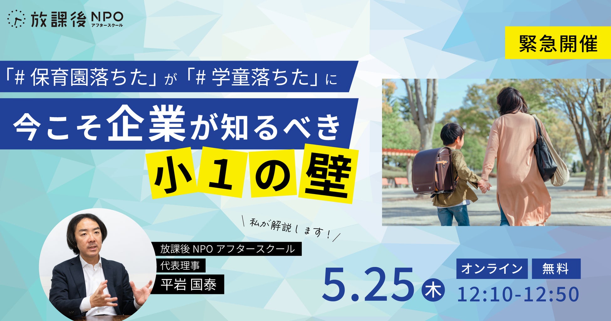 5/25(木)企業向けランチタイム・オンラインセミナー開催:【緊急開催】「#保育園落ちた」が「#学童落ちた」に今こそ企業が知るべき「小1の壁」