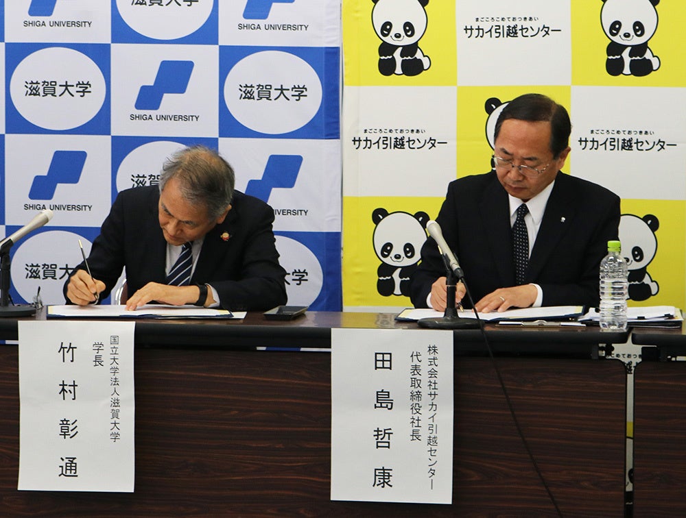 A. 【サカイ引越センター】 滋賀大学の卒業生が、サカイ引越センターにもおり、滋賀大学の講義を担当させて頂くなど、これまで様々なコミュニケーションを取らせていただきました。今回、弊社より協定締結についてのお話をさせていただき、協議の上、締結に至りました。
