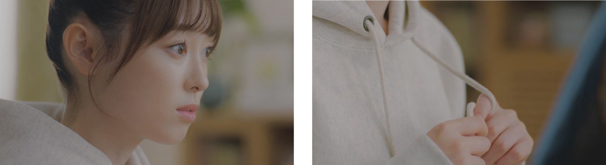 自宅でライフアドバイザー(LA)の説明を受けるシーンから始まり、保障の説明は自分には「関係ない」と思っている様子の福原さん。LAの説明を聞くことで、若いうちから自身の保障を考えることが大事であることに気付き、少しずつ興味を持っていきます。LAの説明を受けて心情が変化し、保障に興味を持っていく福原さんの表情の変化にご注目ください。
