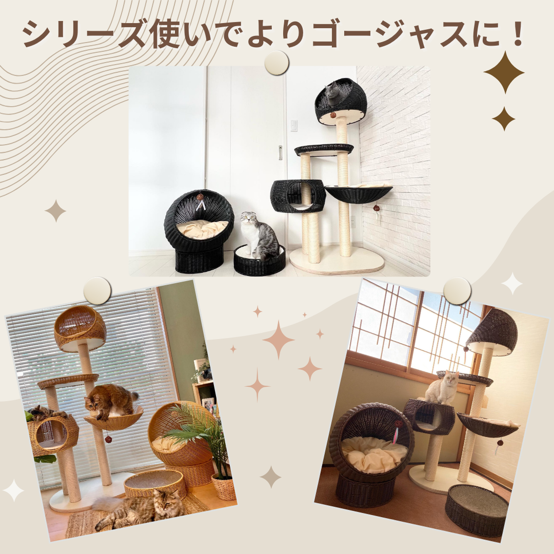 人工ラタンは通気性が高いため、暑い夏にはクッションを外して楽しむ猫ちゃんも♪猫ちゃんの好みや季節に合わせてお使いくださいね。