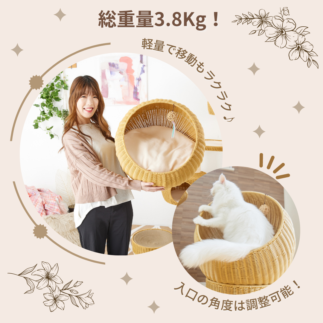 女性でも軽々と持ち上げられる総重量約3.8Kgなので、お掃除や模様替えも簡単!「お掃除で運ぶ度に猫ちゃんがついてくる」という楽しいお声も届いていますよ♪