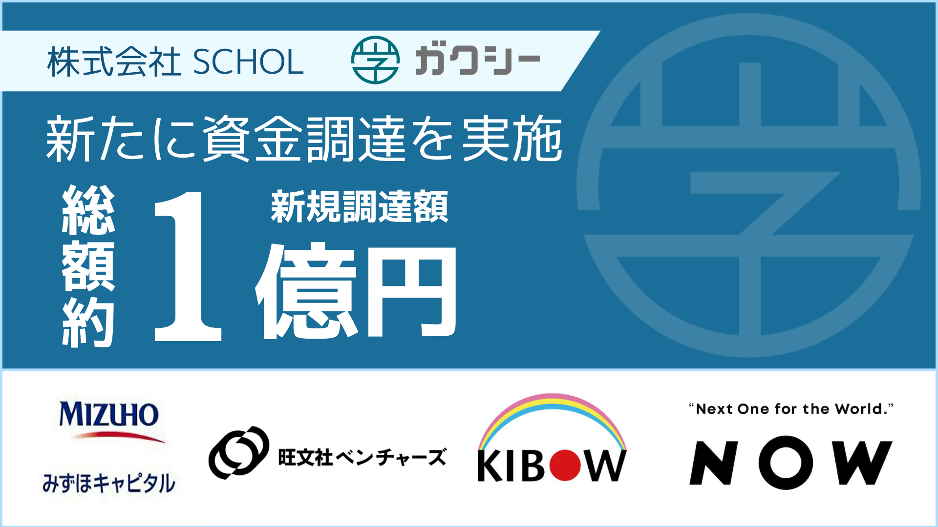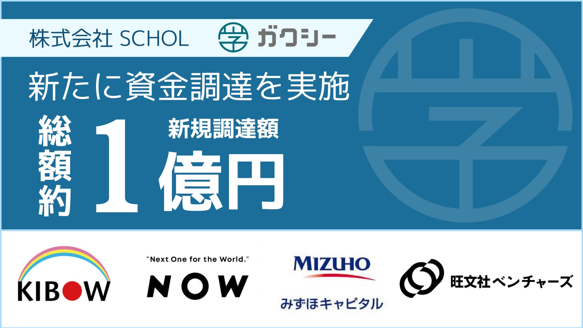 株式会社SCHOL(読み:スカラ、本社:東京都千代田区、代表取締役:松原良輔、以下)は奨学金のDX事業拡大を見据え、新規投資家であるみずほキャピタル、旺文社ベンチャーズ、既存投資家のKIBOW社会投資ファンド、NOWを引受先とした第三者割当増資を実施し、総額約1億円の資金調達を完了した事をお知らせいたします。