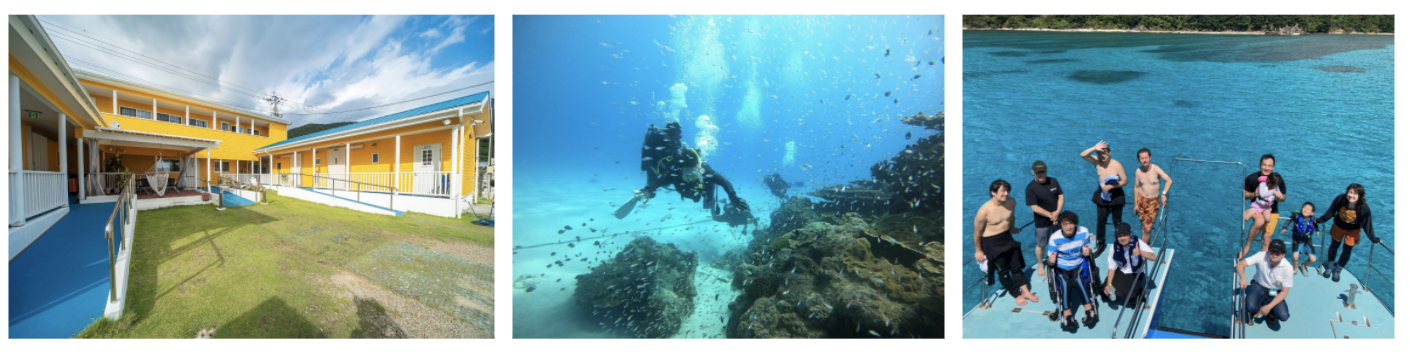 障がい者と健常者が共に安心・安全に楽しめるマリンスポーツ総合施設として、2016年、奄美大島瀬戸内町清水に「ゼログラヴィティ清水ヴィラ」が設立されました。宿泊施設をはじめ、自社船、プールなど全てがバリアフリー設計となっており、スノーケリング、スキューバダイビング、カヤック、クルージング、ホエールウォッチングなど、奄美の海での豊富なマリンアクティビティを誰もが安心して楽しめる設備とサービスが整っています。「旅と海遊びで夢と希望を作り出す」をコンセプトに、日本のダイビング業界におけるユニバーサルデザインの普及を推進しています。