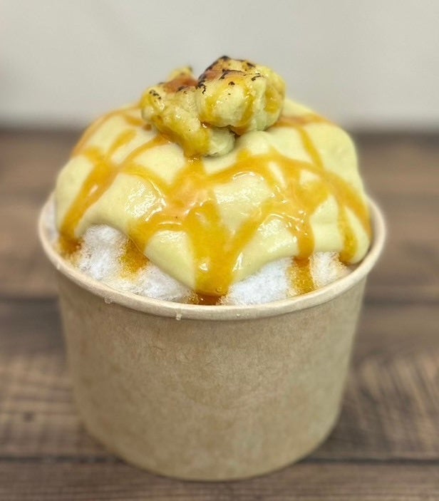 おいもブリュレ(ミルクシロップ、芋ソース、芋の甘露煮)