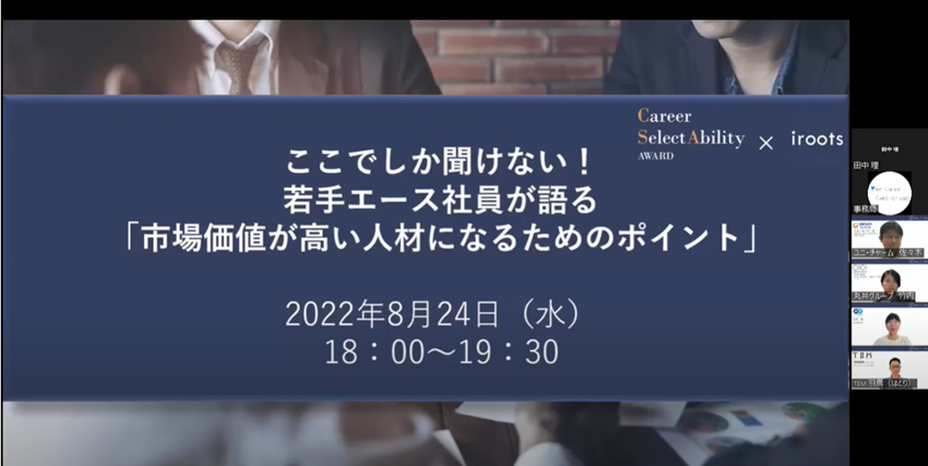 名称:ここでしか聞けない! 若手エース社員が語る 「市場価値が高い人材になるためのポイント」