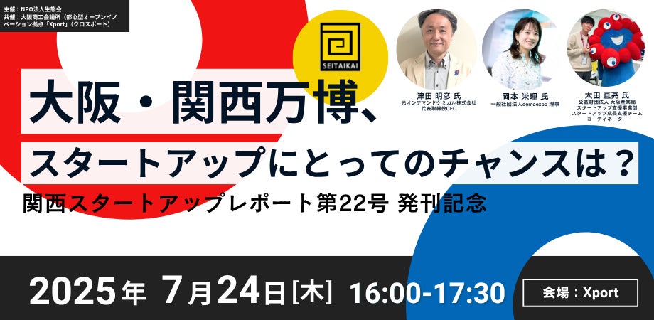 関西の起業エコシステムを可視化する、NPO法人生態会(所在地:大阪市北区、理事長:アレン・マイナー)は、『関西スタートアップレポート第22号』発刊記念イベントを7月24日(木)にXportにて開催します。
