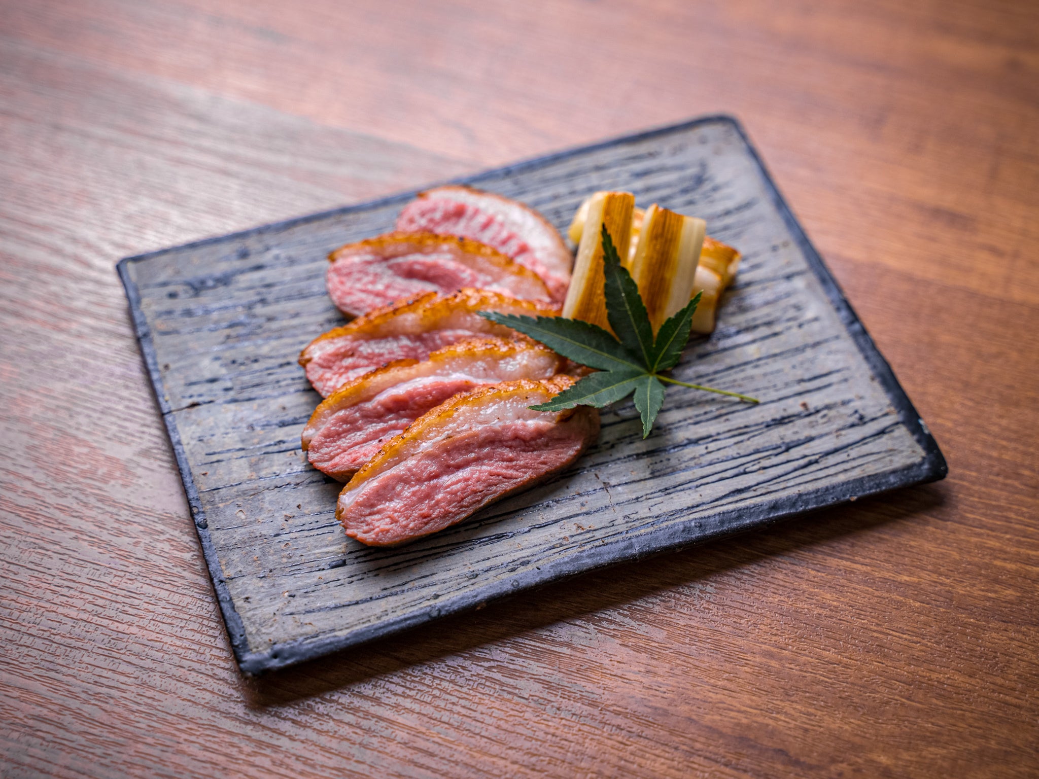 お料理のお皿を載せるお盆は、京都の木工師小林さんに特注した伝統的手法の貫で創っていただいたものです。炭で色付け、漆塗で仕上げられております。
