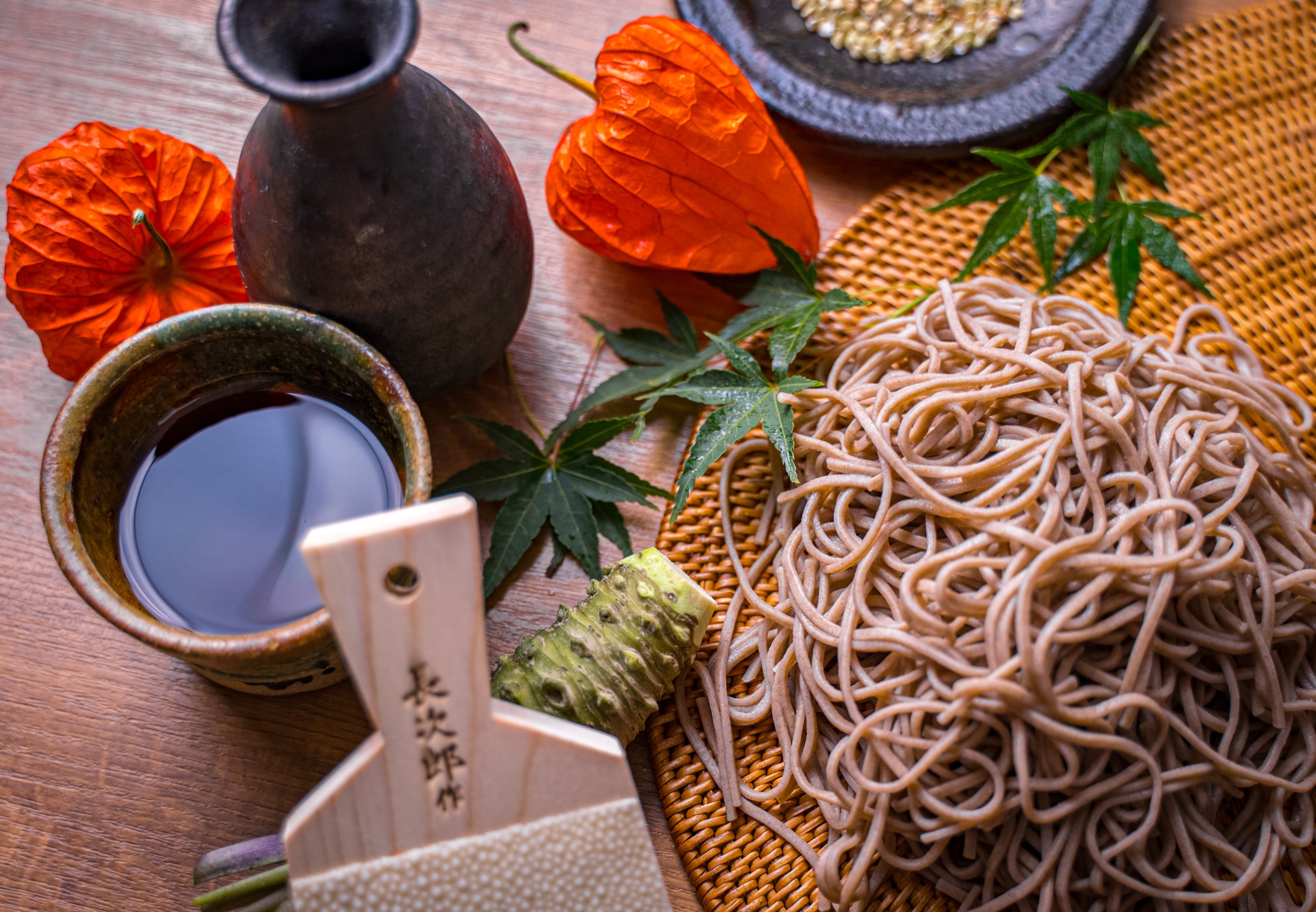 通常のざるとは違い、中央を山のように膨らませることで水切りを良くし、蕎麦の香りを広げてくれます。