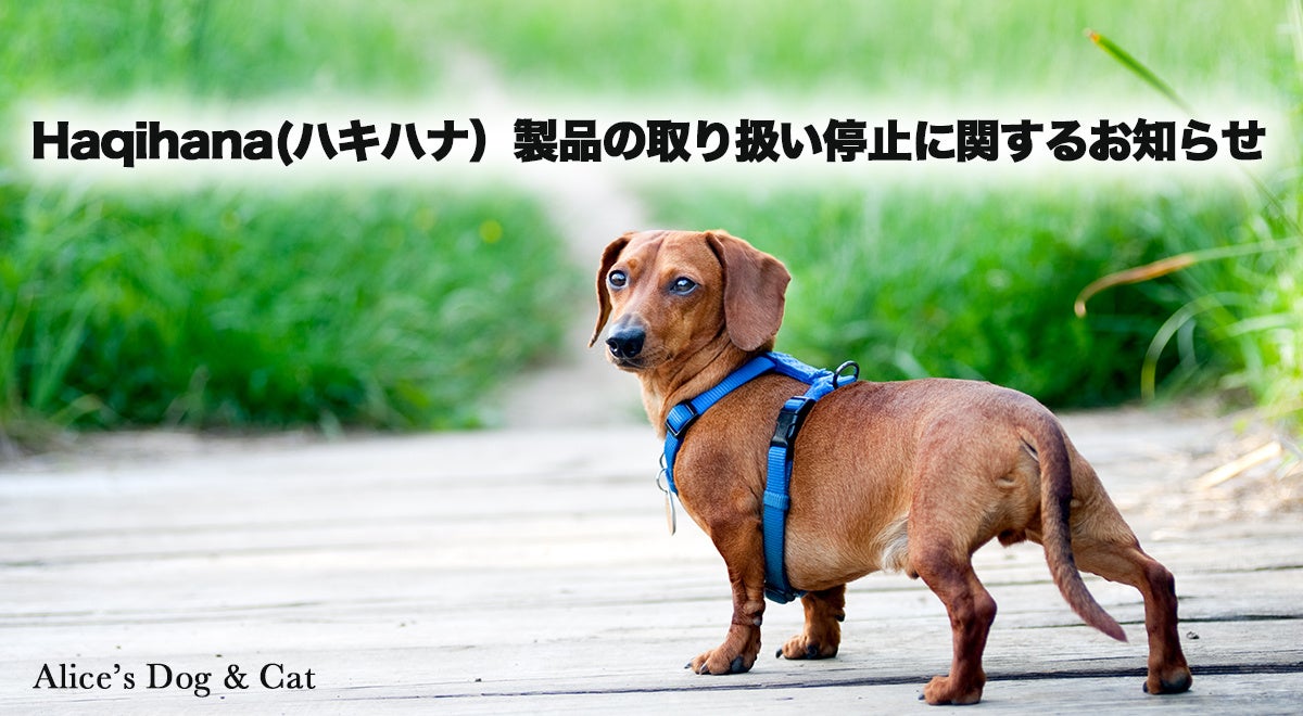 Alice's Dog & Cat/株式会社IBS Trading(以下、当社)は、この度、これまで輸入代理をして販売していたHAQIHANA S.r.l.(以下、HAQIHANA社)の「Haqihana」ブランドのハーネス・リードについて弊社在庫及び新規の販売を正式に中止することを決定いたしました。