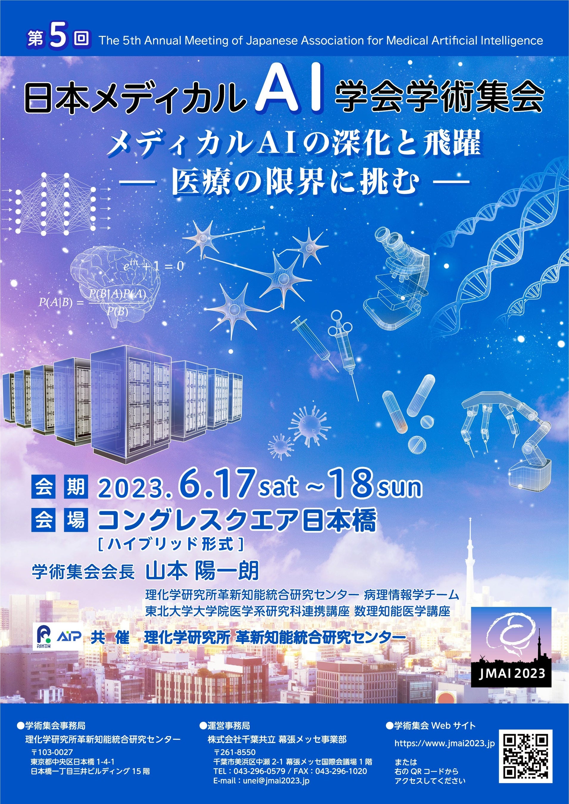 来る2023年6月17日(土)~18日(日)、第5回日本メディカルAI学会学術集会を開催いたします(大会長:山本 陽一朗)。今年度の会場はコングレスクエア日本橋に変更となっております。参加方法は、現地参加とオンライン参加のハイブリッド形式です。