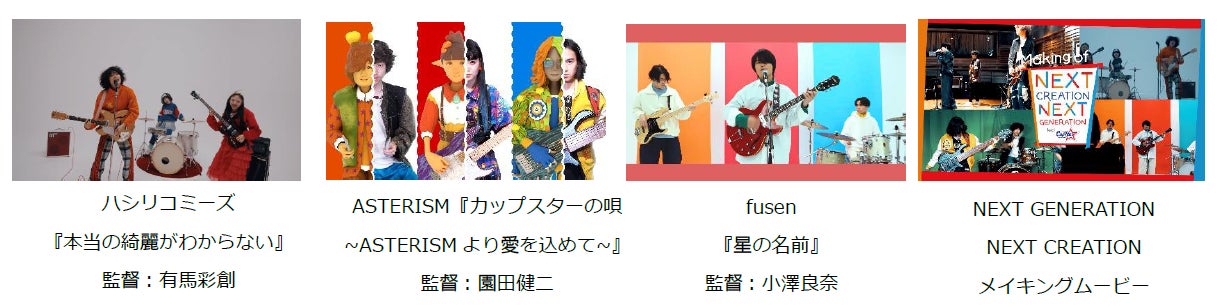 今回第2弾で公開するコラボレーションソング3曲を担当するのは、若い世代から注目されているロックバンド「ハシリコミーズ」、インストメタルバンド「ASTERISM」、3ピースバンド「fusen」の3アーティストと監督を務めるのは、有馬彩創(東京藝術大学大学院美術研究科デザイン専攻1年)、園田健二(東京藝術大学大学院美術研究科デザイン専攻1年)、小澤良奈(東京藝術大学美術学部デザイン科4年)の3名です。