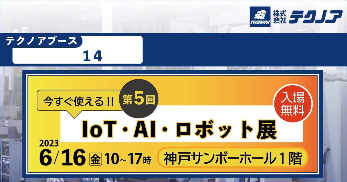 株式会社テクノア(本社:岐阜県岐阜市、代表取締役:山﨑 耕治、以下:テクノア)は、6/16に神戸サンボーホールで開催される「第5回 今すぐ使える!! IoT・AI・ロボット展」に出展いたします。