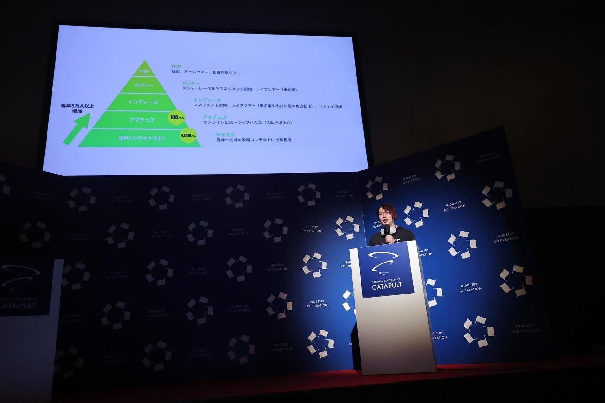 中でも、目玉企画であるベンチャー企業や大手企業の新規事業の責任者が7分間でプレゼンテーションする「スタートアップ・カタパルト」は最も注目度の高いセッションであり、国内最大級のピッチ・コンテストとなっています。