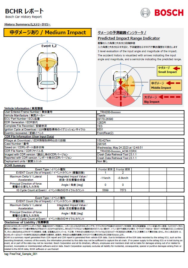 ボッシュ、EDRのデータを中古車販売に活用。客観的なデータで正確な車両評価を可能にする世界初の新技術。Bosch Car History Report(BCHR)を公開。