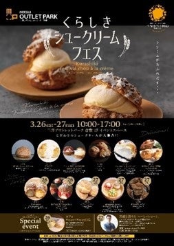 地元・岡山をはじめ広島や兵庫などのスイーツ店からこだわりのシュークリームを集めた「くらしき シュークリームフェス」を開催いたします。また、3月26日(土)には西日本調理製菓専門学校の学生が作るシュークリームを限定販売、3月27日(日)には「バリスタ界のエンターテイナー」として注目を集めている岡田 章宏さんがコーヒーショーとしてコーヒーを振る舞います。