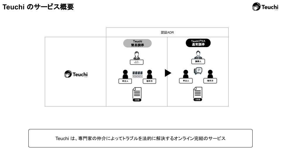 ※3 Teuchiは、2021年10月、テキストチャットによるオンライン完結の紛争解決サービスとして、国内で初めて法務大臣のADR認証を取得しています。