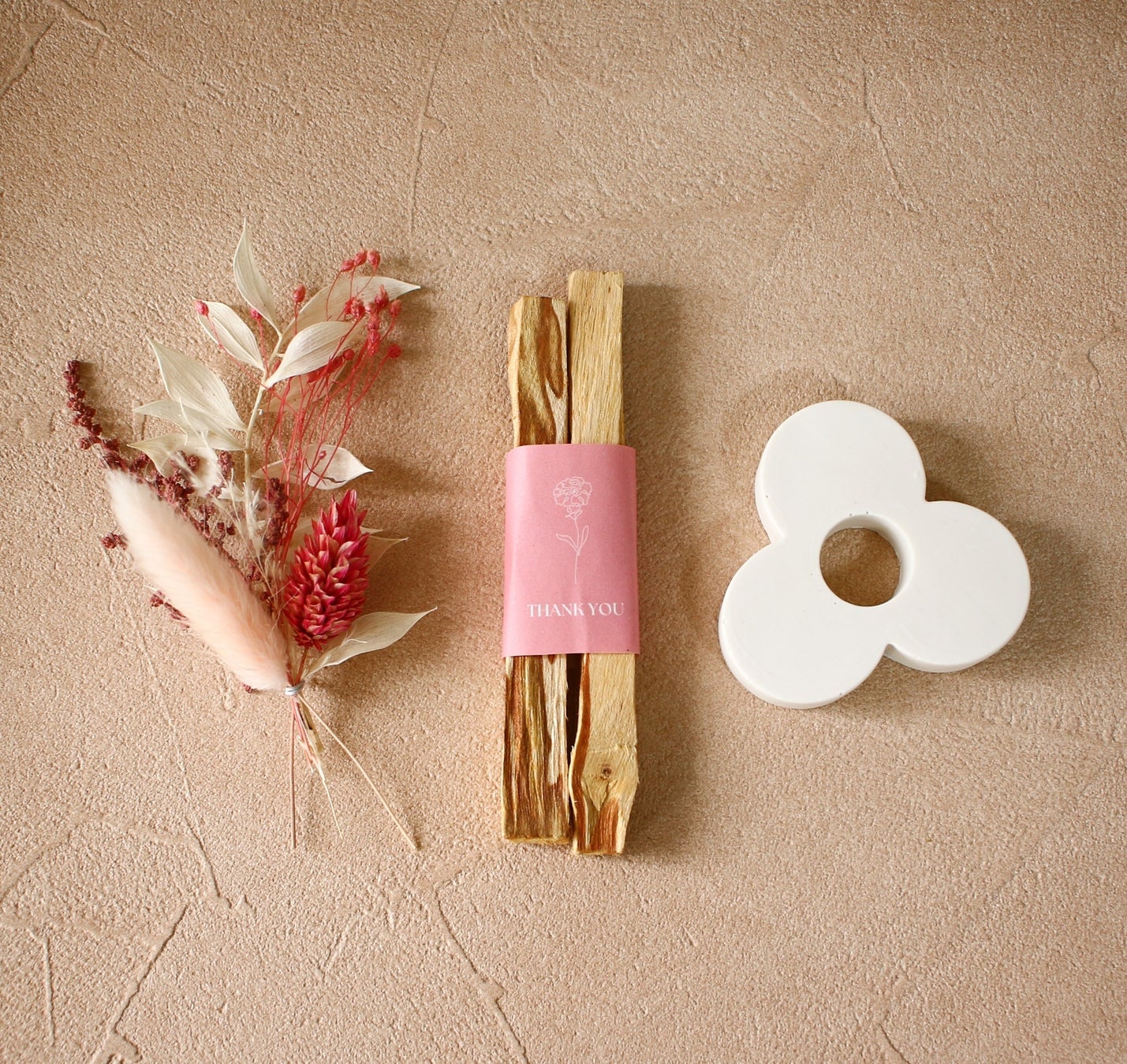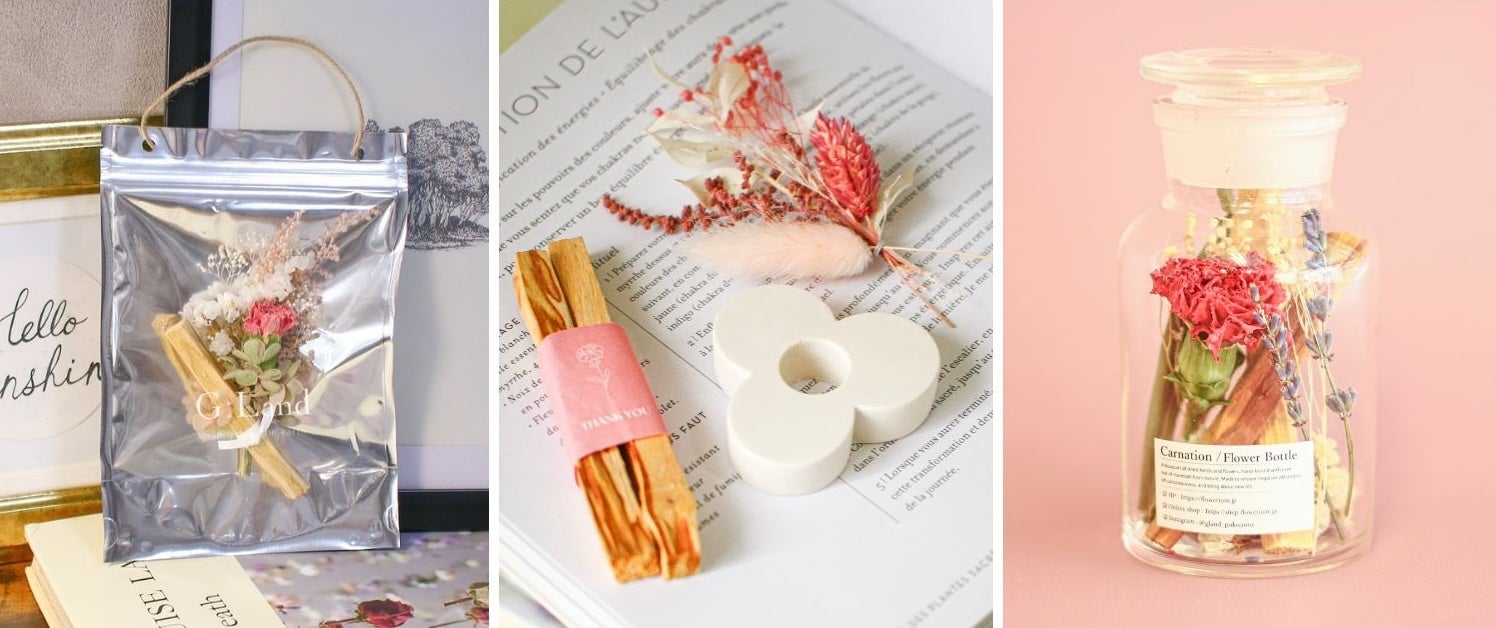 ポジティブエネルギーを呼ぶという浄化香パロサントと再び命を吹き返した花々のコラボレーションセット。