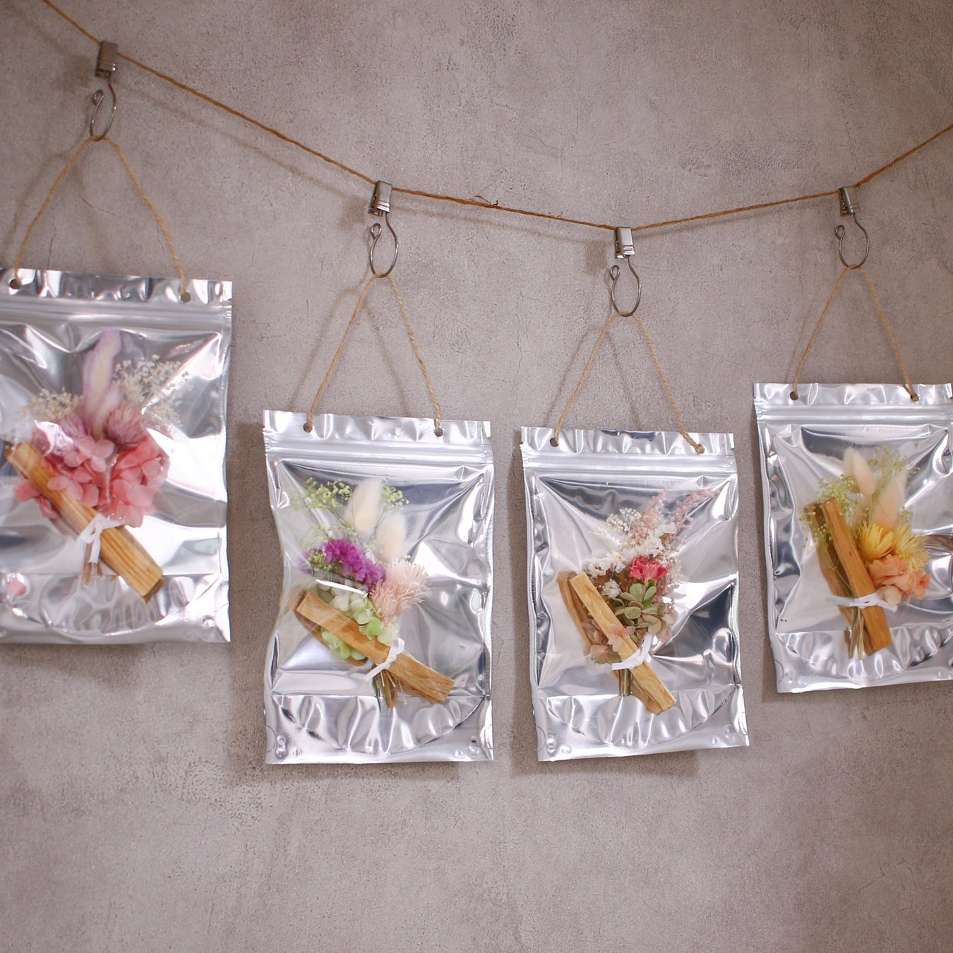 インテリアとして香りも楽しめるパロサント付きの飾れるミニブーケ。