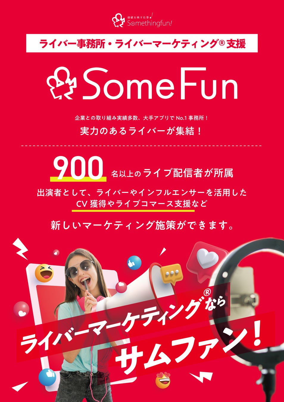 各プラットフォームで活躍するライバー約1000名が所属するライバー事務所「サムファン」が提供するライブコマースを始めとした企業PR手法をご紹介します。