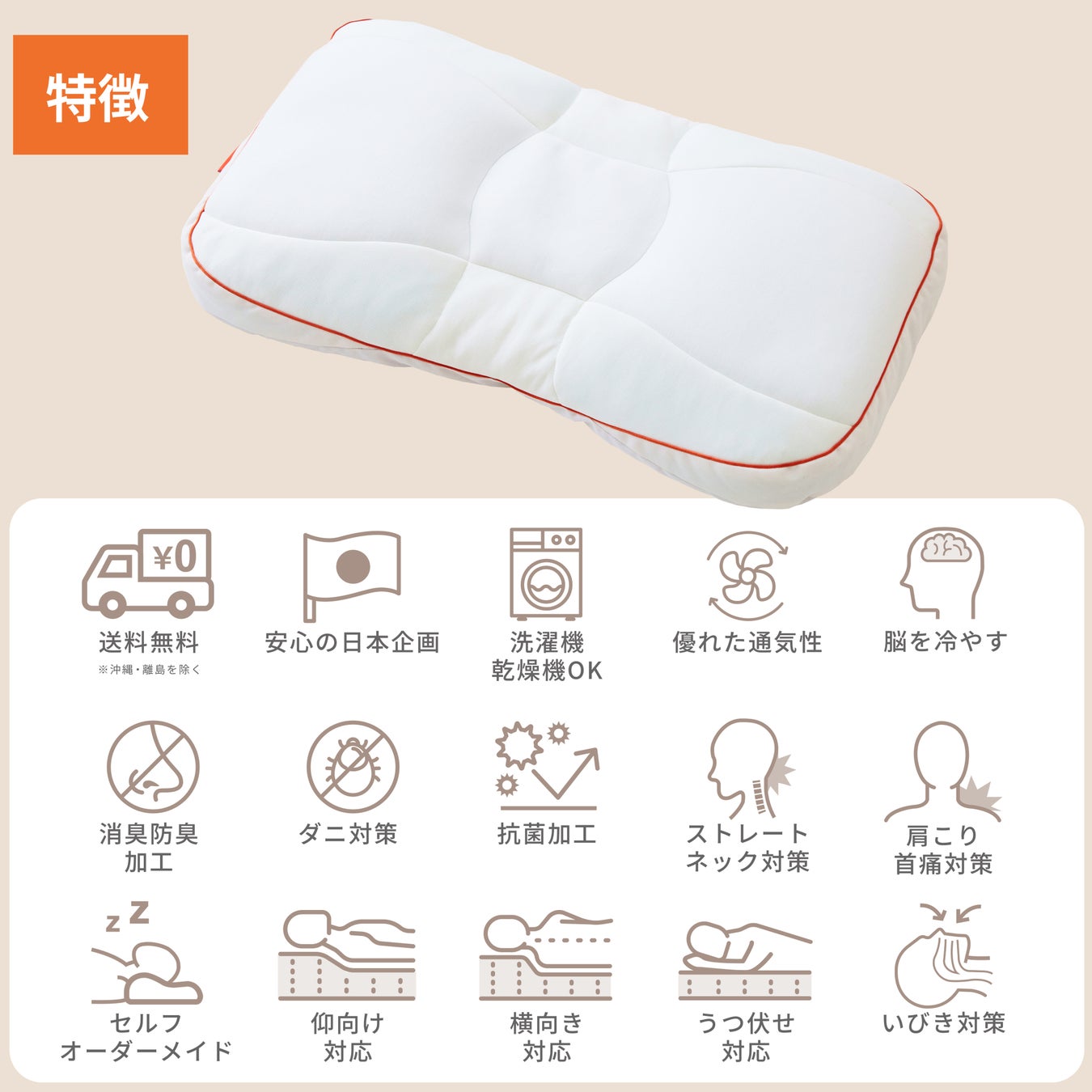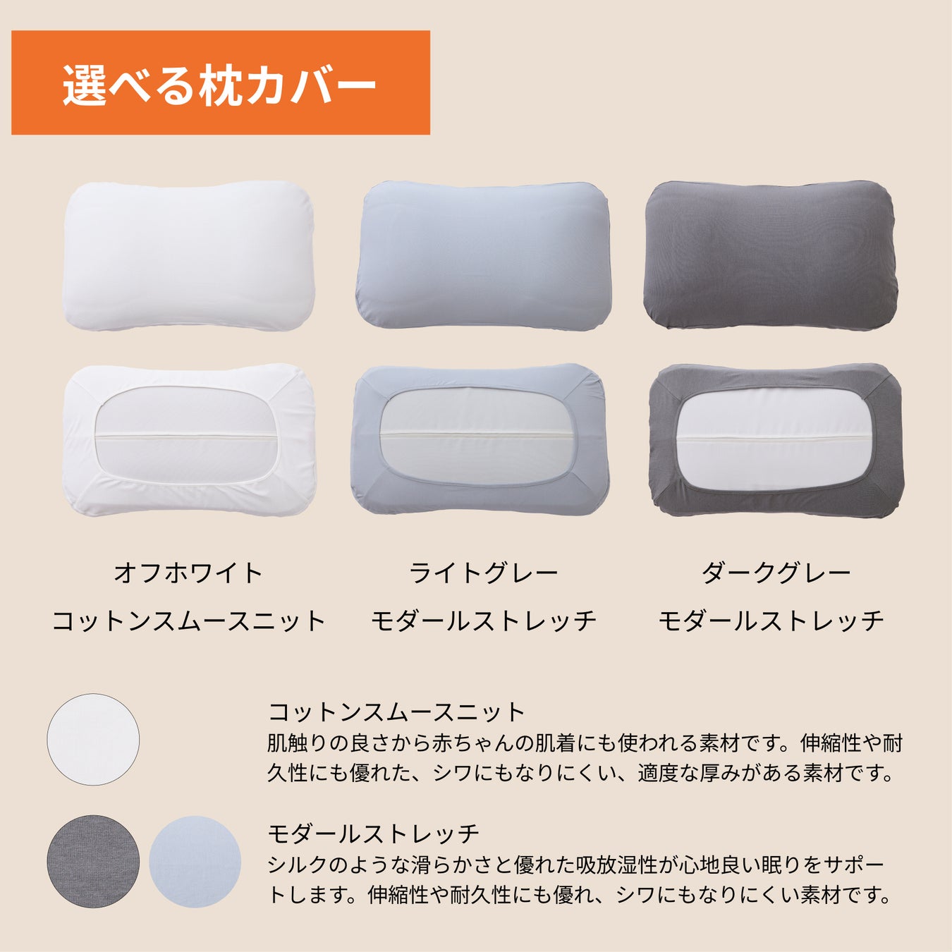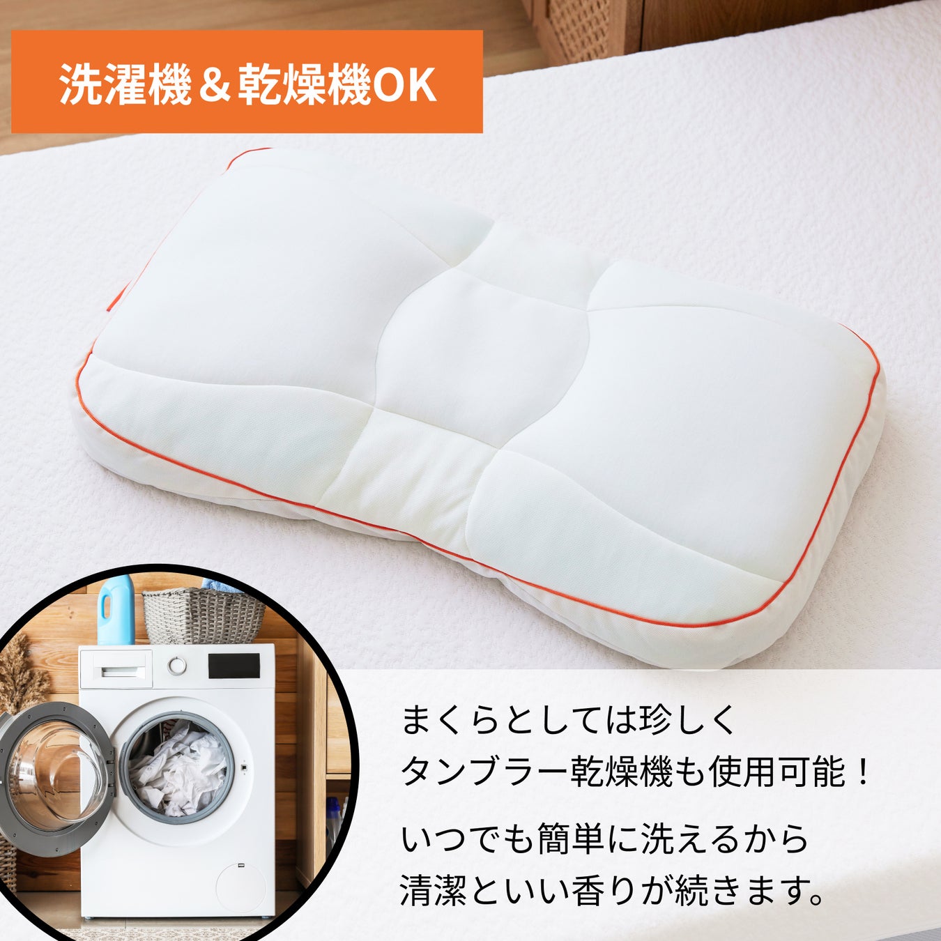 汗や匂いがつきやすい枕だから、丸洗いはもちろん、なんとタンブラー乾燥機まで対応した素材を厳選しました。