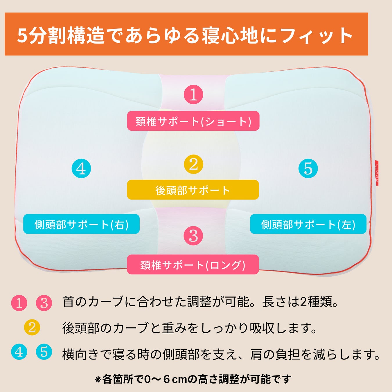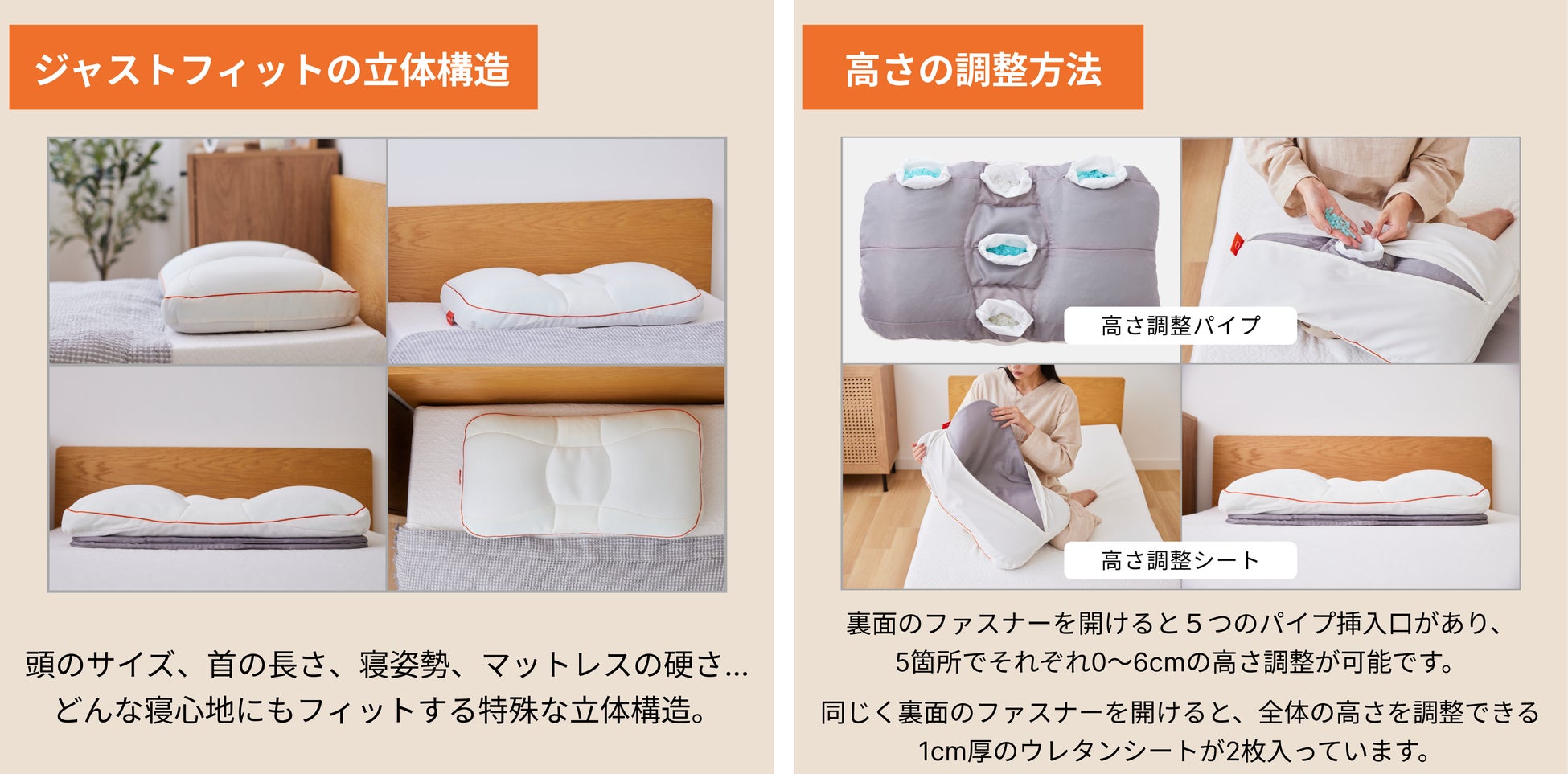 あらゆる寝姿勢、体型、いびきなどのお悩みにアプローチ可能で全体 or 部分的な高さ調整も自由自在。