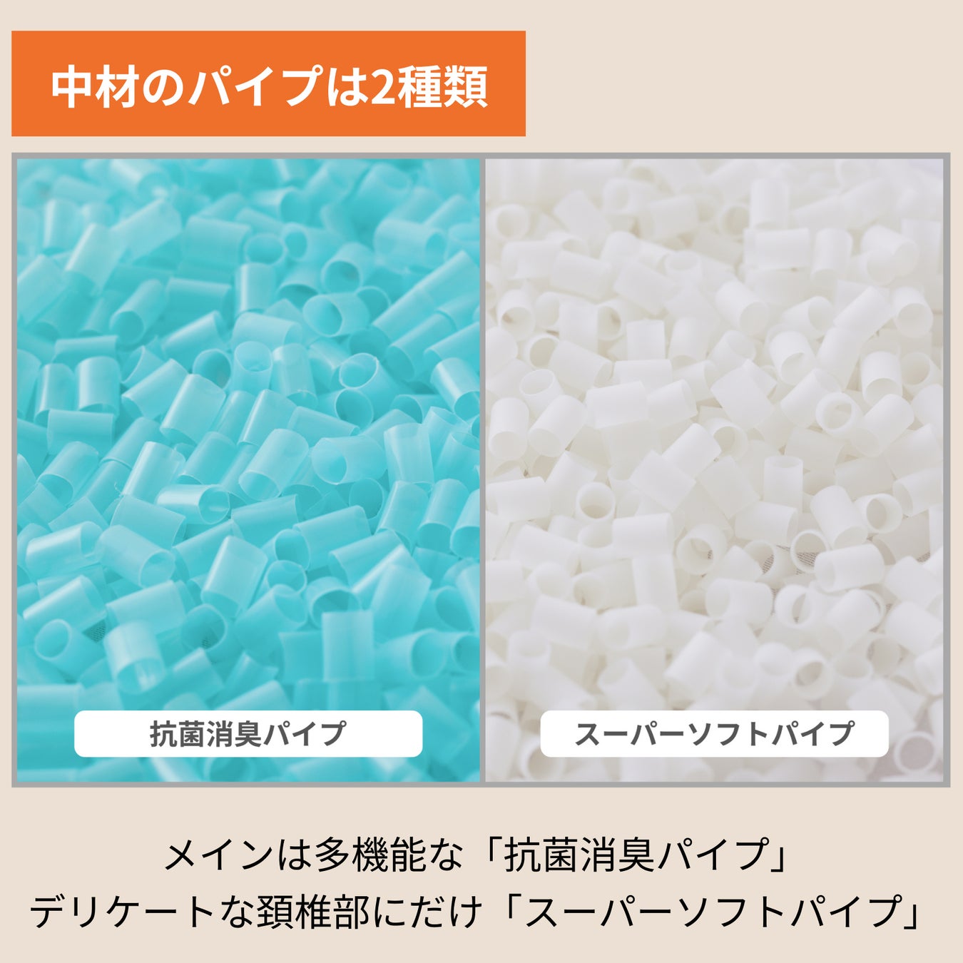 頸椎部分は柔らかにサポートしてくれる「スーパーソフトパイプ」