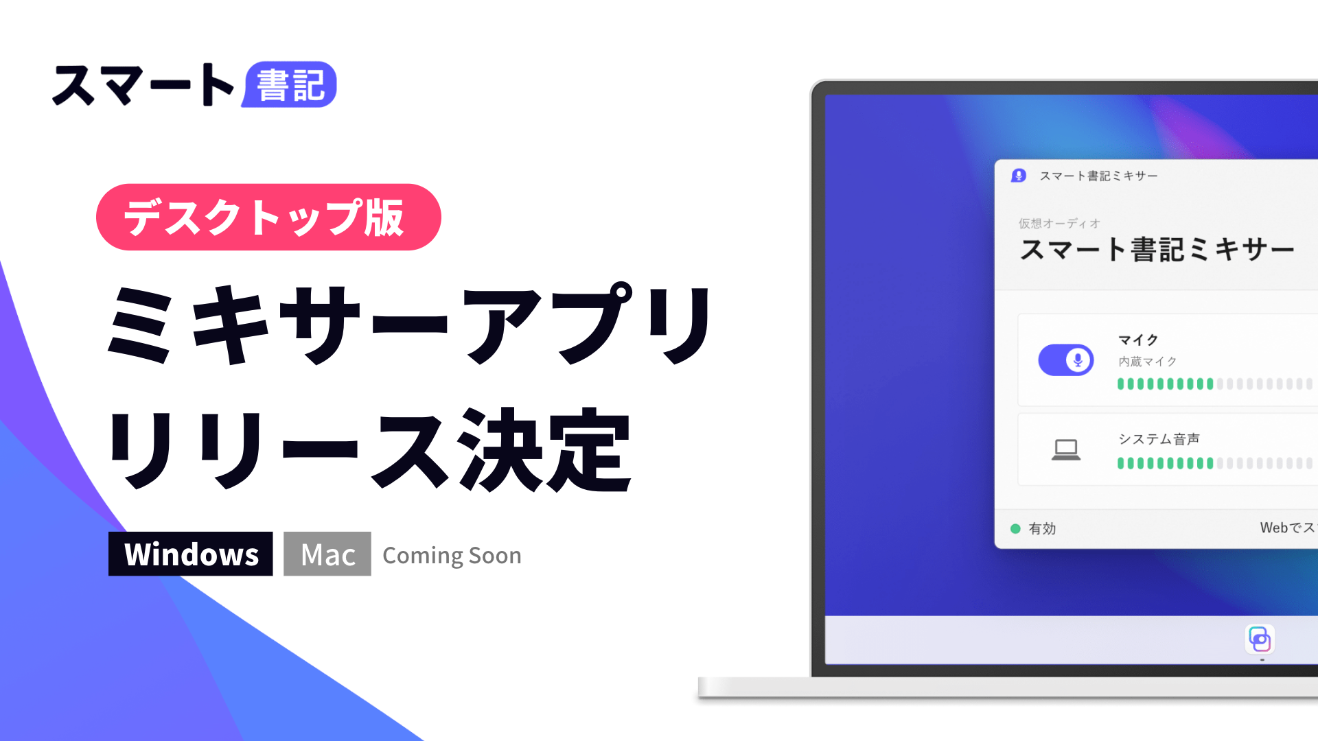 すべての会議シーン・オンライン会議ツールで会議記録の事前準備を不要にするデスクトップアプリ、「スマート書記ミキサー」のリリース決定