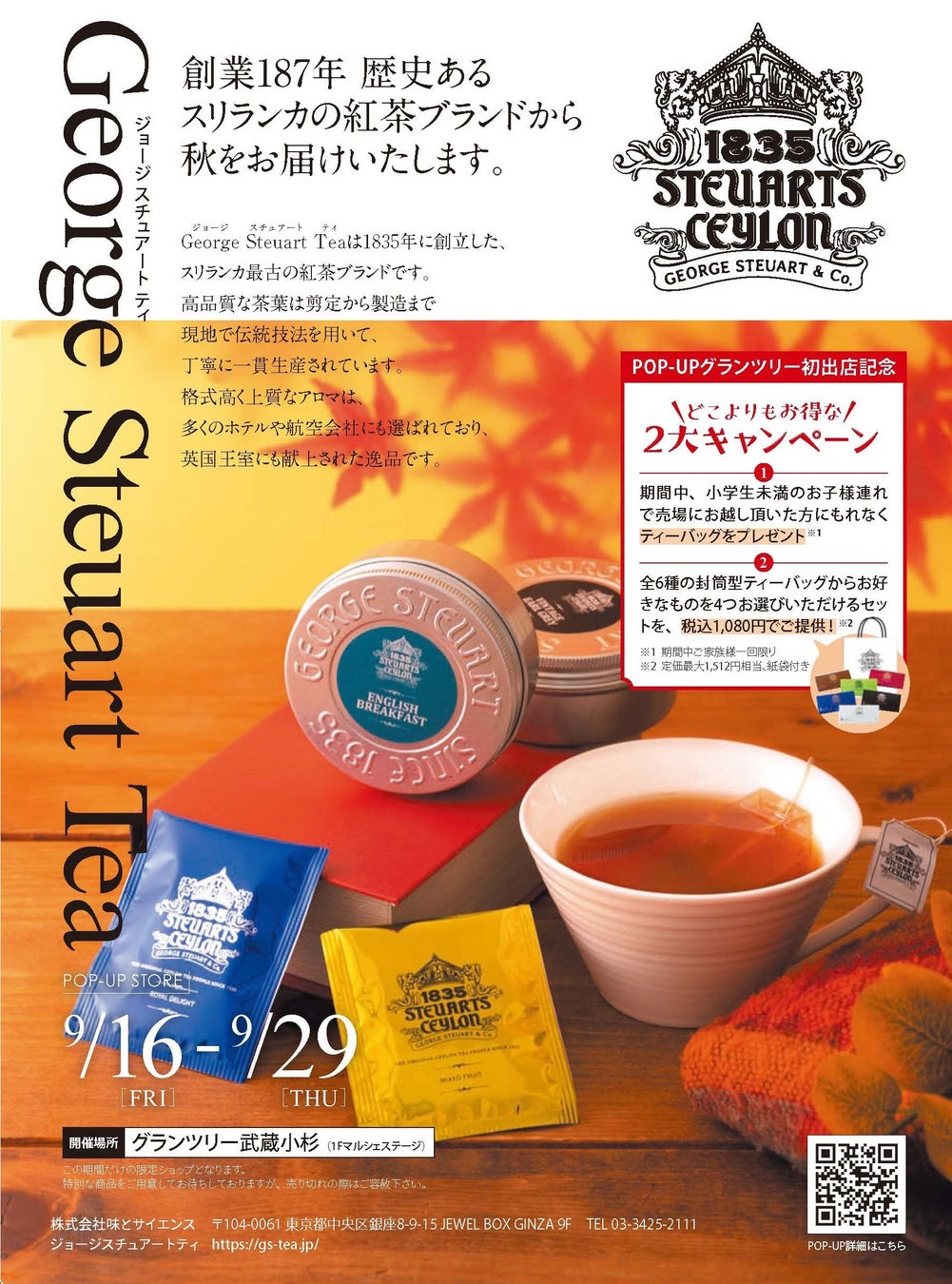 スリランカ最古の紅茶ブランド「George Steuart Tea」が秋をお届け。グランツリー武蔵小杉にPOP UP shopがオープン!!