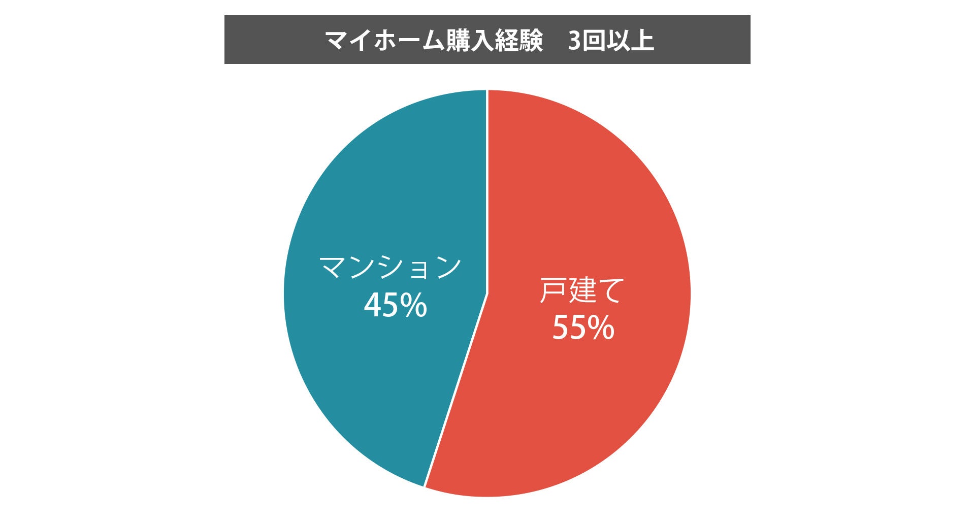 【マイホーム購入経験 3回以上】が「戸建て55%」「マンション45%」となりました。