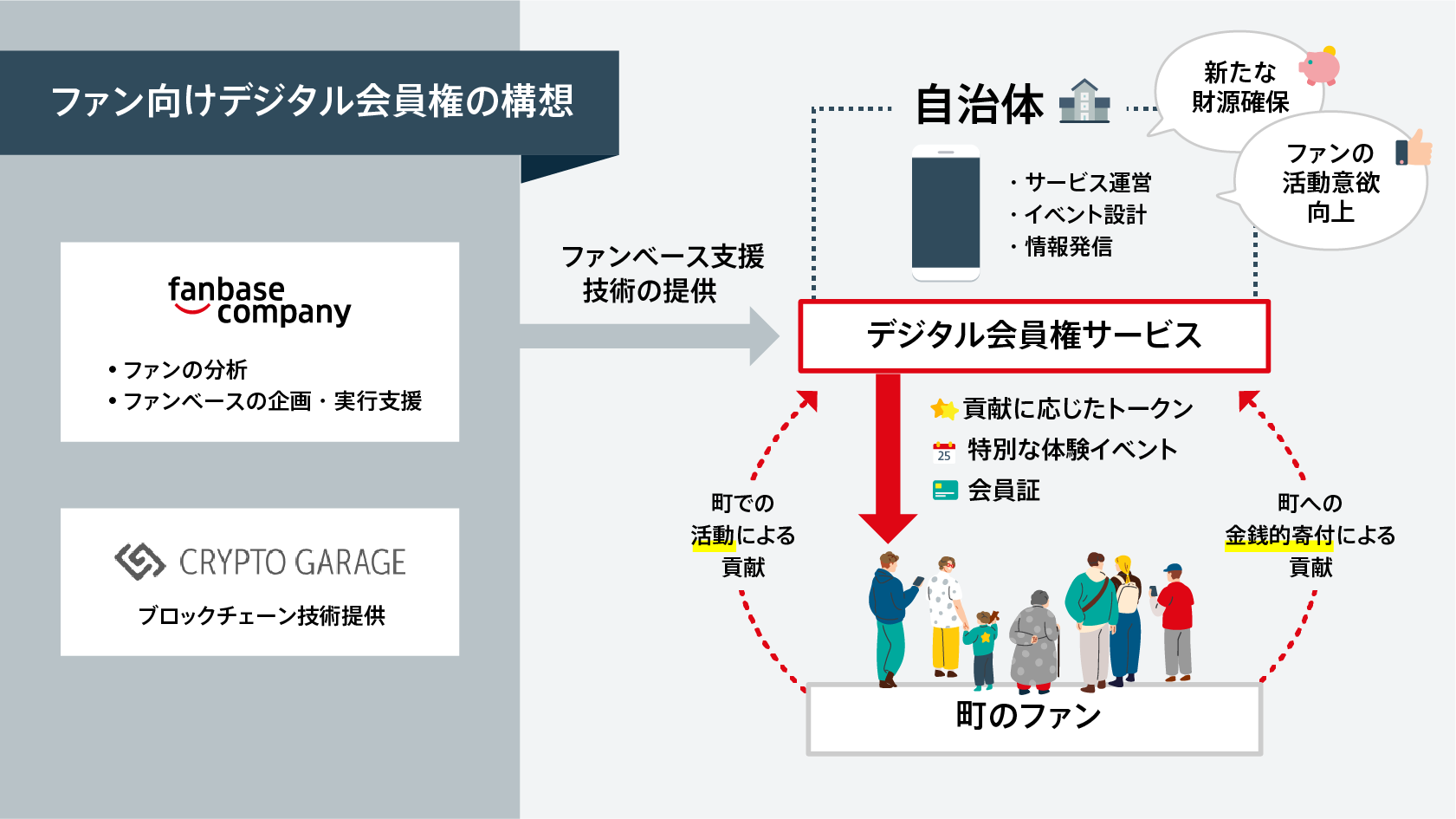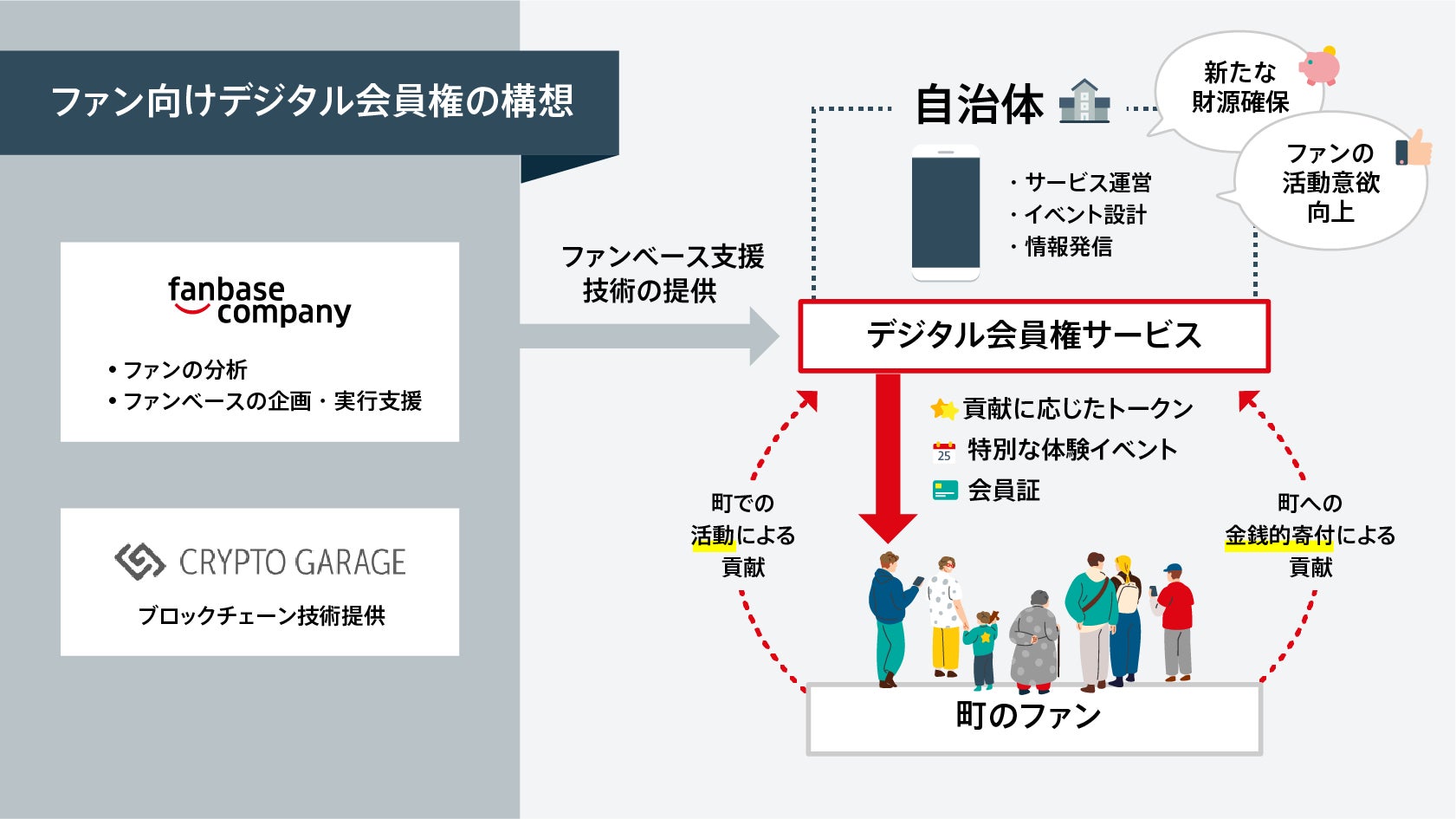ファンベースカンパニーは 、これまでのファン分析結果に基づき、特典設計や体験イベントの企画・運営支援等を担い、本プロジェクトを推進しました。Crypto Garageは、本施策を支える仕組みとして、ブロックチェーン上の秘密鍵の管理を実施するキーマネジメントサービスであるmahola wallet、およびブロックチェーン・バックエンドサービスであるmahola apiを提供し、プロジェクトを支援いたしました。