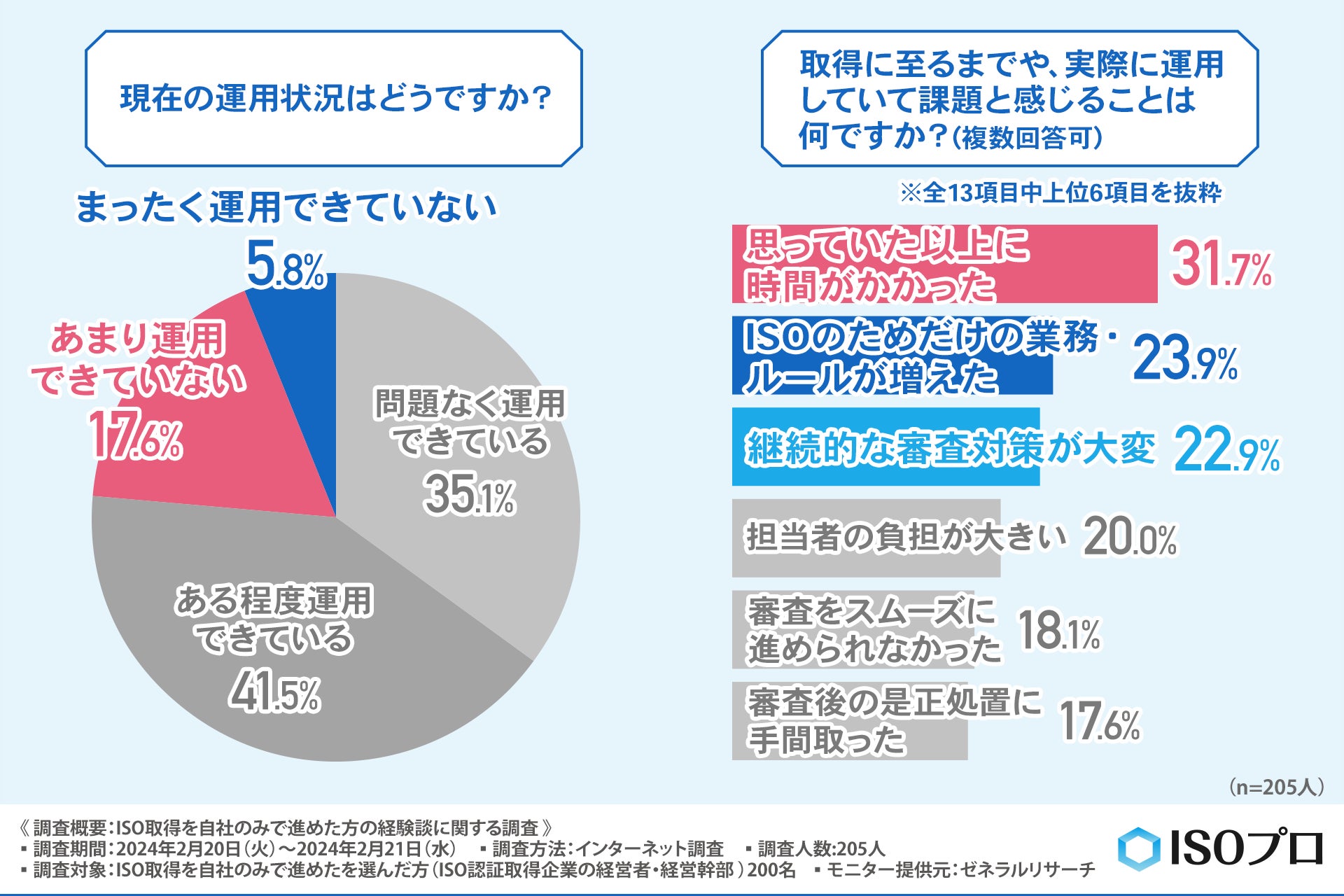 ISO認証の取得前後で様々な課題を感じていることが明らかになりました。