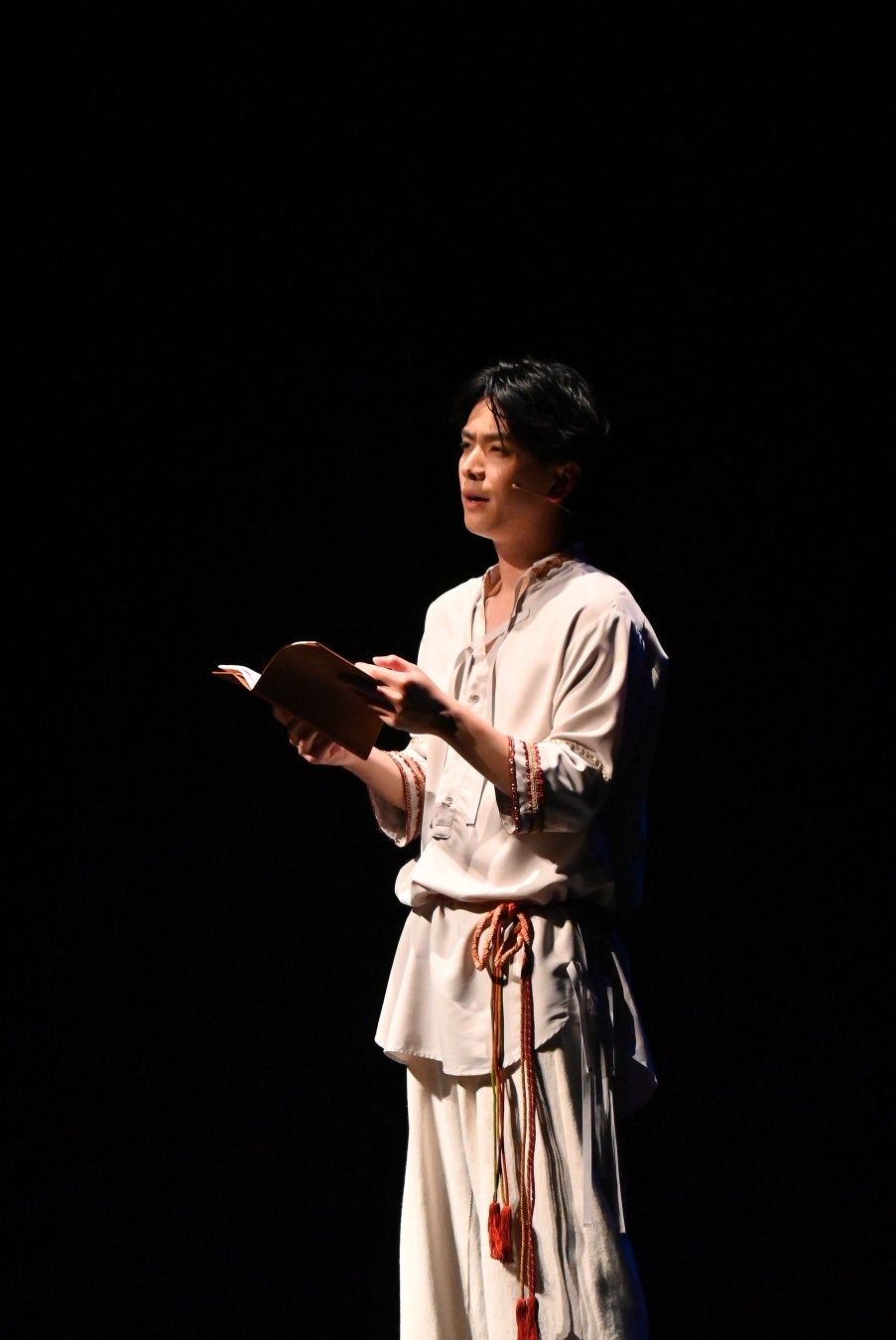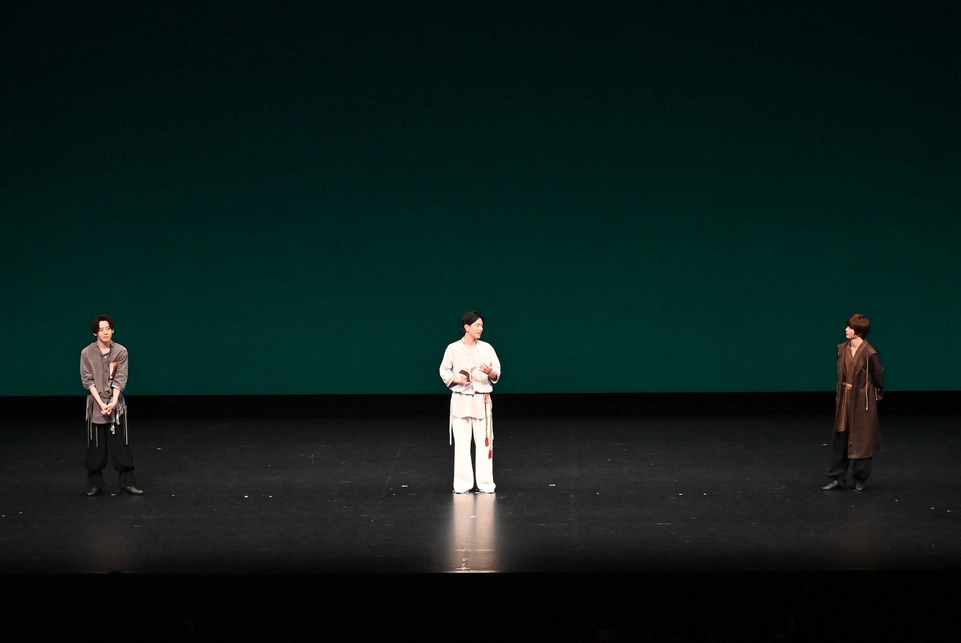 第二部のリーディングシアターでは日本神話で荒くれものの男神として知られる“スサノオ”の古事記をもとにした『スサノオ異伝』が上演され、黒羽がスサノオ役を、染谷、牧島は何役かを掛け持ちして演じ、それぞれの存在感を遺憾なく発揮した。