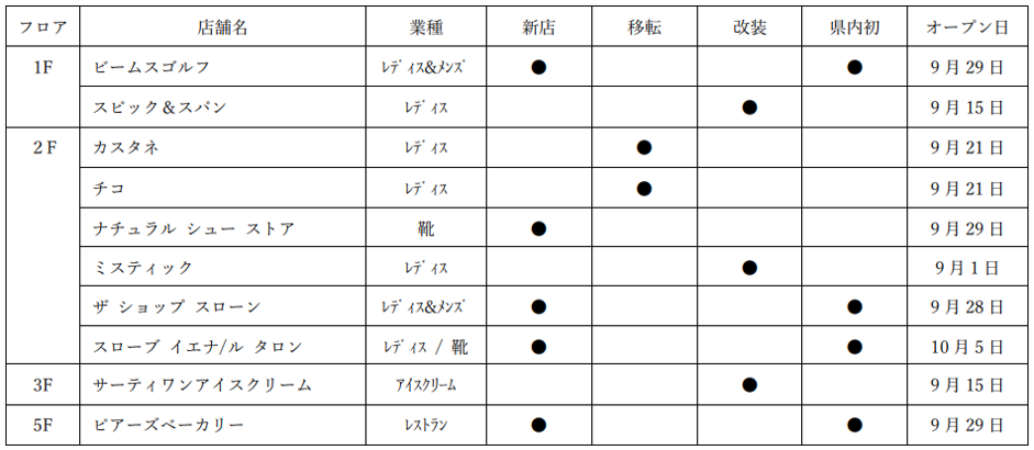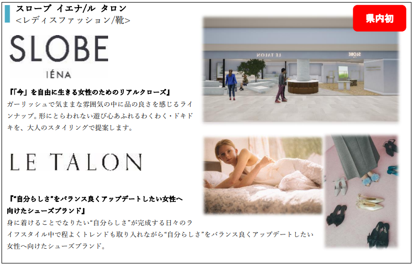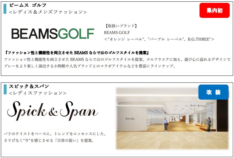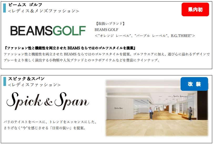 2021年以来となる大規模リニューアルで、今回はファッション・ファッション雑貨、雑貨店舗を中心にリニューアル(新規・移転・改装を含む)を行います。今回のリニューアルは、現在不足している業種・アイテムの導入、県内初出店のショップの誘致を行い、メインターゲット層(20~30代女性)の来館頻度・購買頻度UPに繋げていきます。