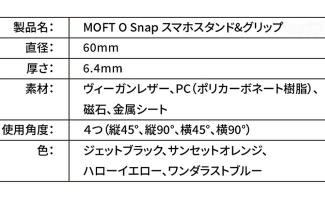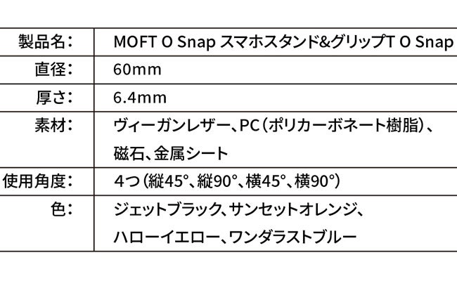 公式商品ページ:https://www.moftjapan.com/products/moft-o-snap-phone-stand-grip