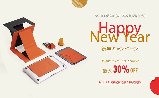 シンプルかつクリエイティブなPC・スマホ・タブレット周辺のアイデア商品を開発し続けるMOFT(モフト)ブランド(LEMORE社、本社:アメリカカリフォルニア、代表取締役:Julianna He)が2021年12月28日(火)よりMOFT Japan公式オンラインストアにて、スマホスタンド&グリップ「MOFT O」の最新強化版を販売開始しました。並行して、2021年12月28日(火)~2022年1月7日(金)の期間限定で、新年キャンペーンを開催いたします。