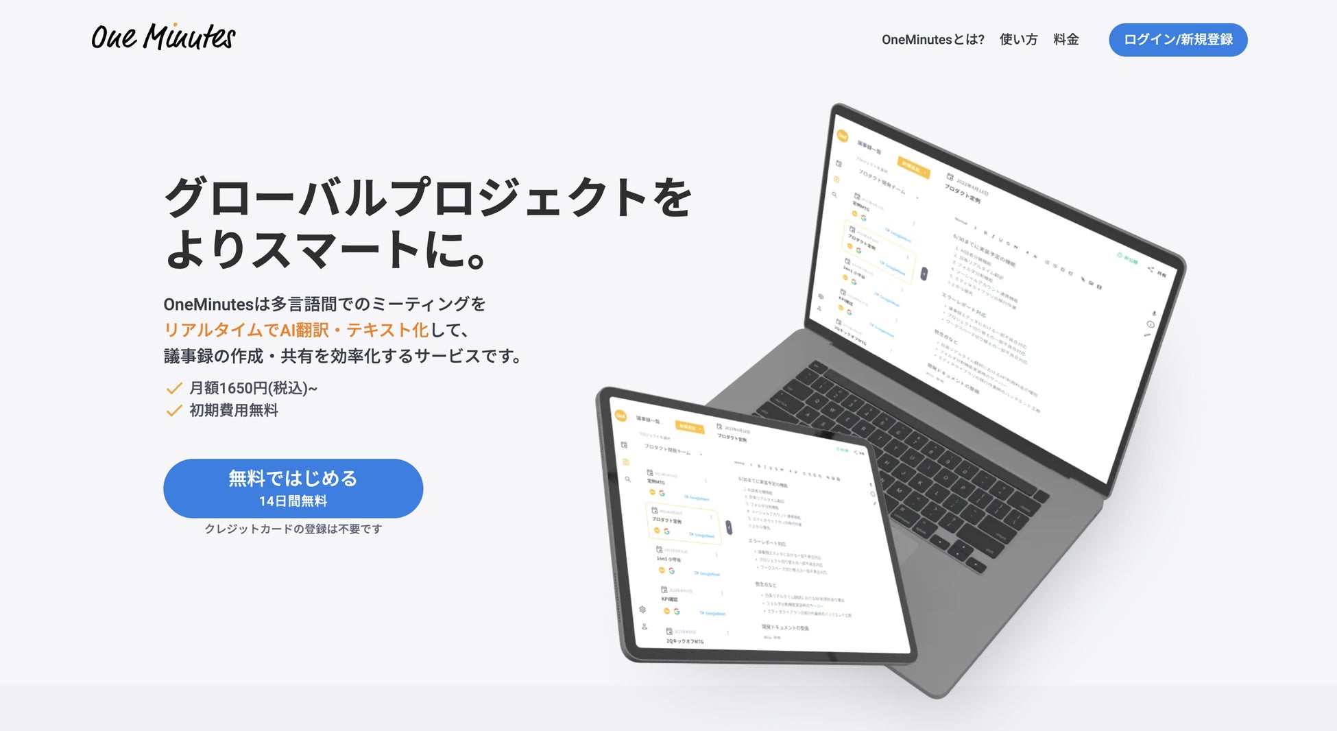 かねてよりOne Minutesは議事録・ミーティングメモに特化したDXツールとして、高精度な文字起こし機能、日英同時翻訳機能と直感的なドキュメント作成・共有機能を提供してまいりました。