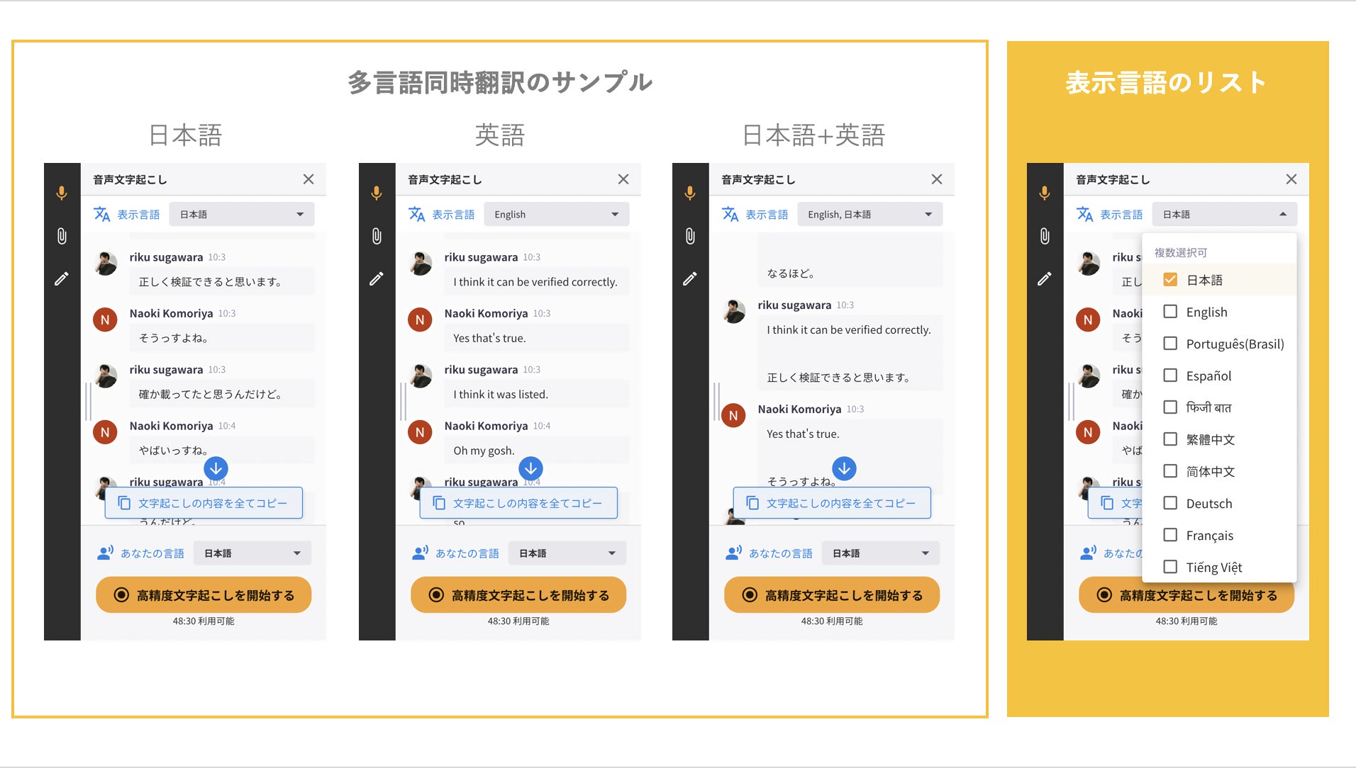 これにより日々英語ベースのミーティングをされている方々の議事録・ミーティングメモ業務を最大50%効率化することができておりました。