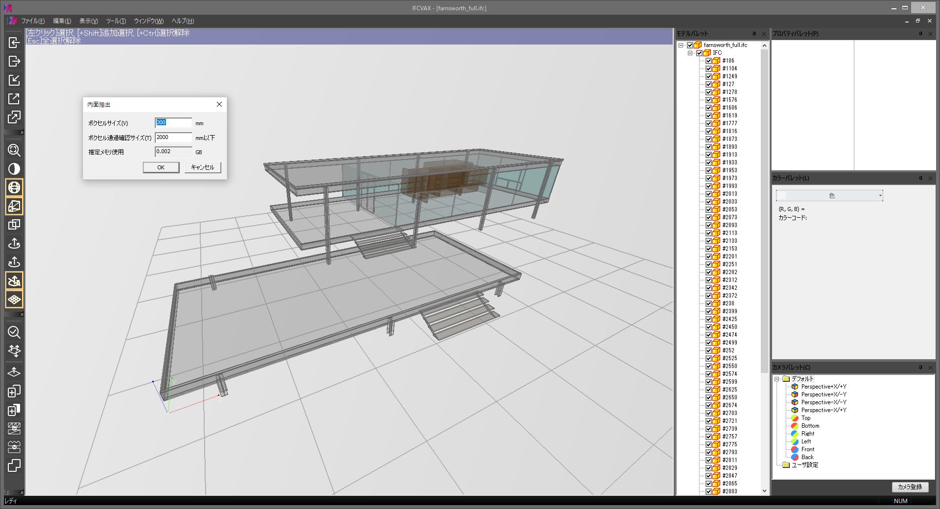 3Dモデルや属性のビューワとしてはもちろん、その他にもモデルのチェック機能や各種修正・編集機能、メッシュ削減やシュリンクラップ(モデル全体を包む閉じたメッシュを作成)、モデルの内面のみを抽出する機能など、IFCデータを活用する上で便利なさまざまな機能が利用できます。