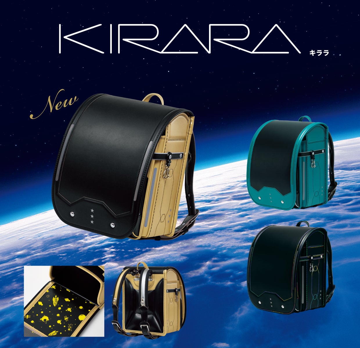 360 度に反射材を使用した光るランドセル。 かぶせ(ふた) を開けるとロケットや宇宙モチーフが散りばめられたデザイン。 個性豊かな人気シリーズから輝くゴールドが追加。