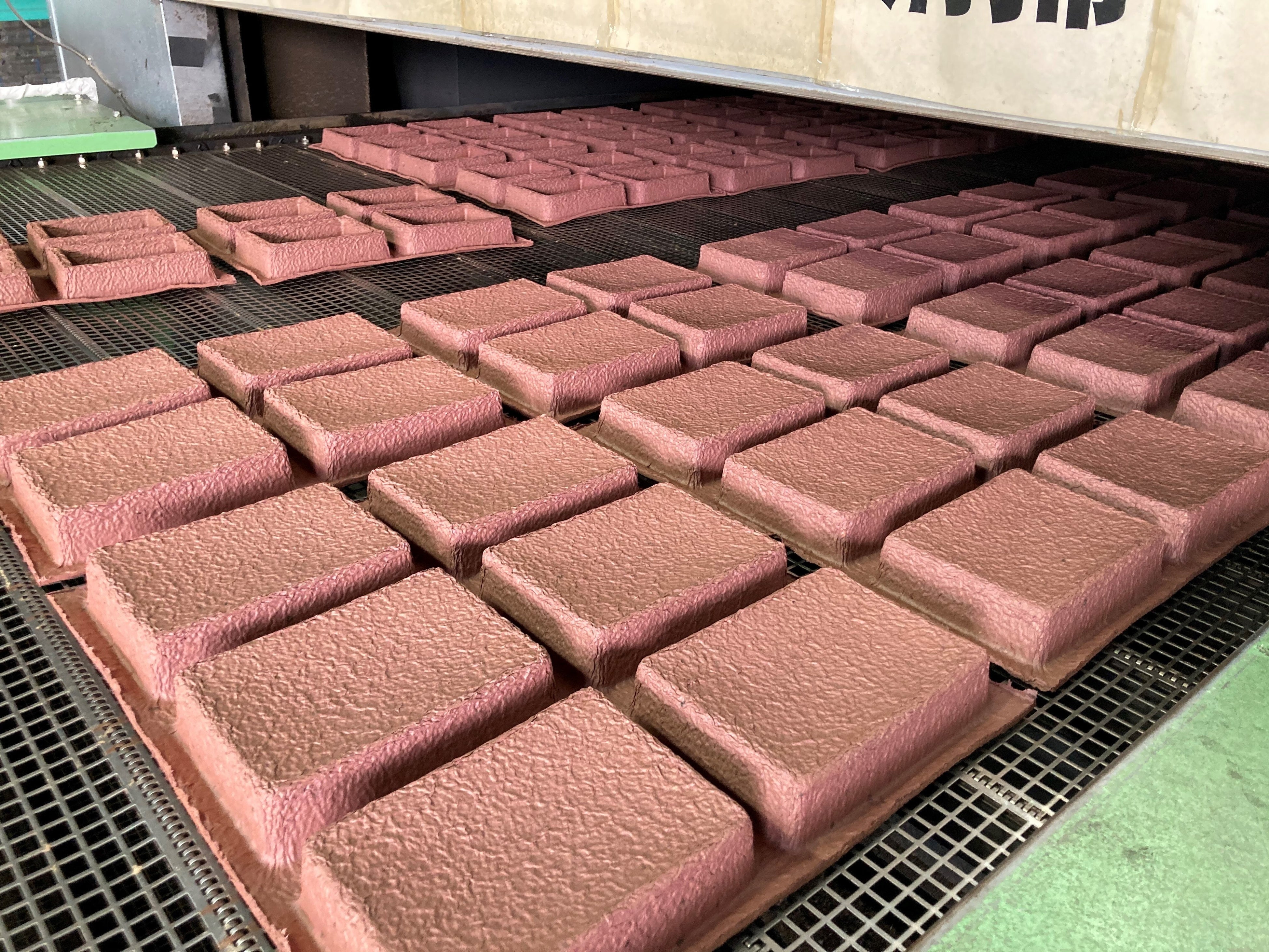 パルプモールドは、古紙を主原料とする植物パルプを水で溶かし、金型で抄き上げたのち、乾燥・プレスさせてできる紙の成形品です。これまでは主に緩衝材として使われてきたパルプモールドですが、近年の環境意識の高まりとともに、脱プラスチック素材として世界中で注目を集め始めています。