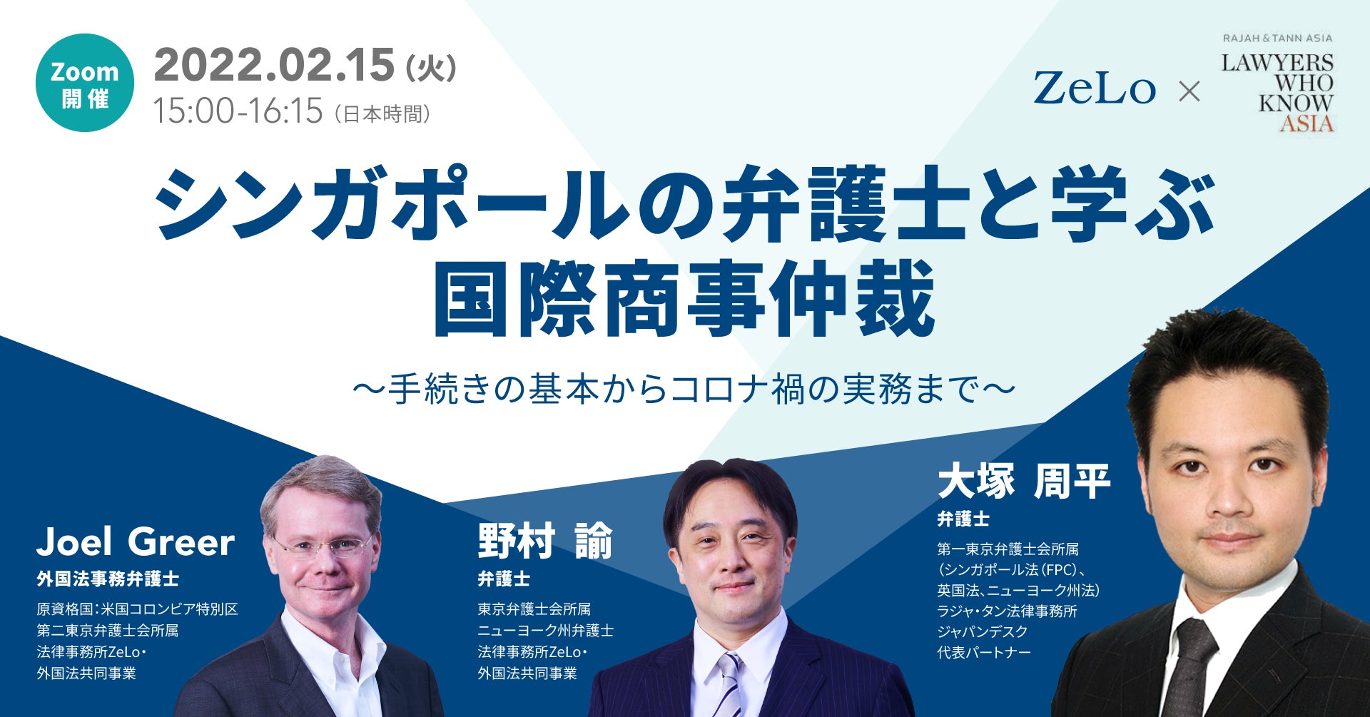 「シンガポールの弁護士と学ぶ国際商事仲裁~手続きの基本からコロナ禍の実務まで~」法律事務所ZeLoが2月15日(火)にWebセミナー開催