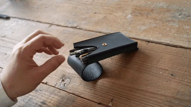 耐久性を上げる為に内側にも革を張りました。表が裏に裏が表になるデザインなので使用している時にも高級感を感じられる作りになっています。