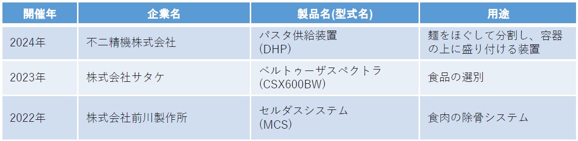 過去のFOOMAアワードで最優秀賞を受賞した製品は下表の通りです。