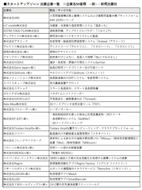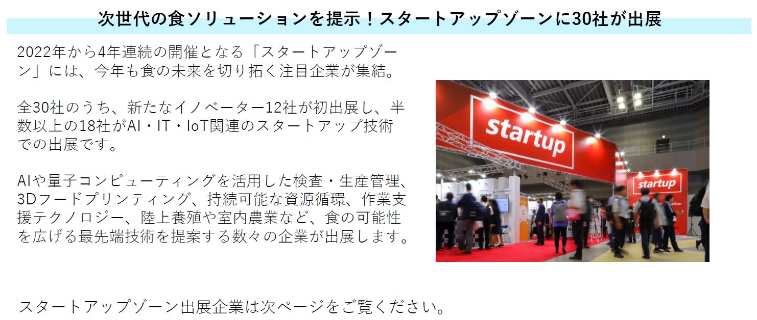 ■次世代の食のソリューションを展示。スタートアップゾーンに30社が出展、内12社が新規出展。