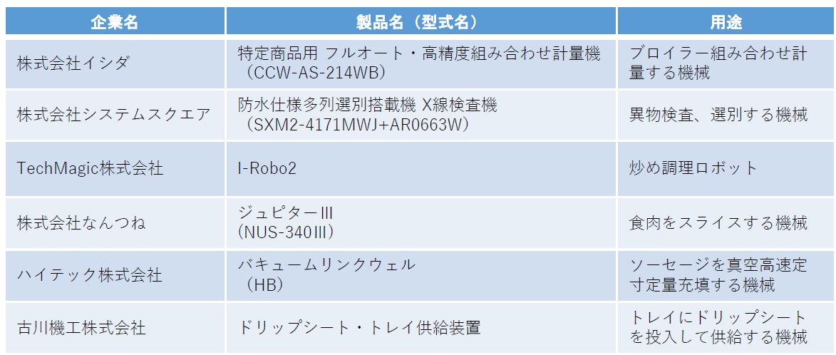 応募対象製品: -食品を製造・加工する機械、装置及び製造ライン。