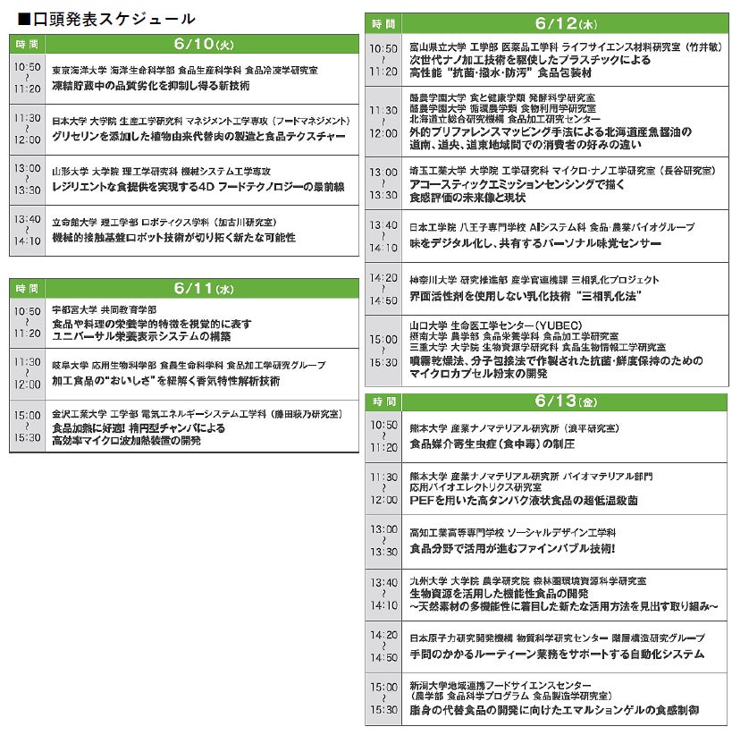 4つの食品関連学会が食品製造開発につながるテーマで講演を行います。