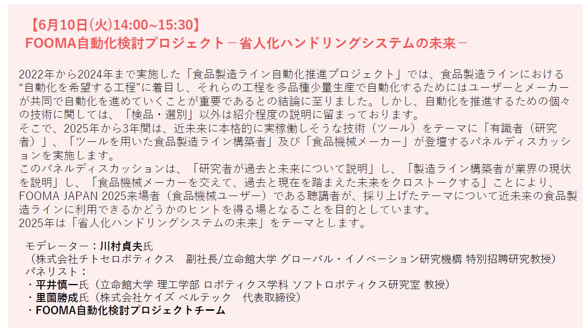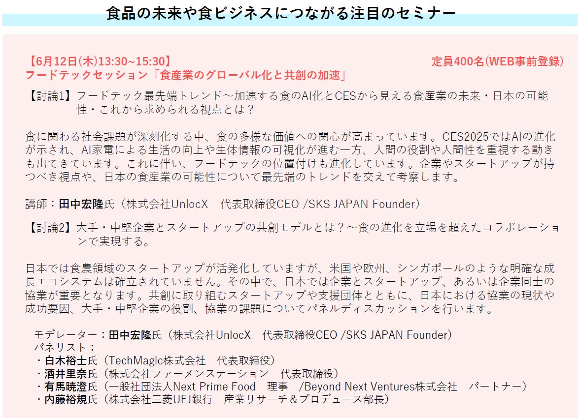 ■フードテックセッション、FOOMA自動化検討プロジェクト、農水省セミナーなど注目のセミナー開催。