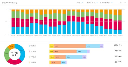 「PR Analyzer」は、テレビ、新聞、雑誌、WebとSNSを網羅したクラウド型PR効果測定ツールです。広告換算費、リーチ数、シェア・オブ・ボイスなど複数の指標を用いて、競合比較も可能です。