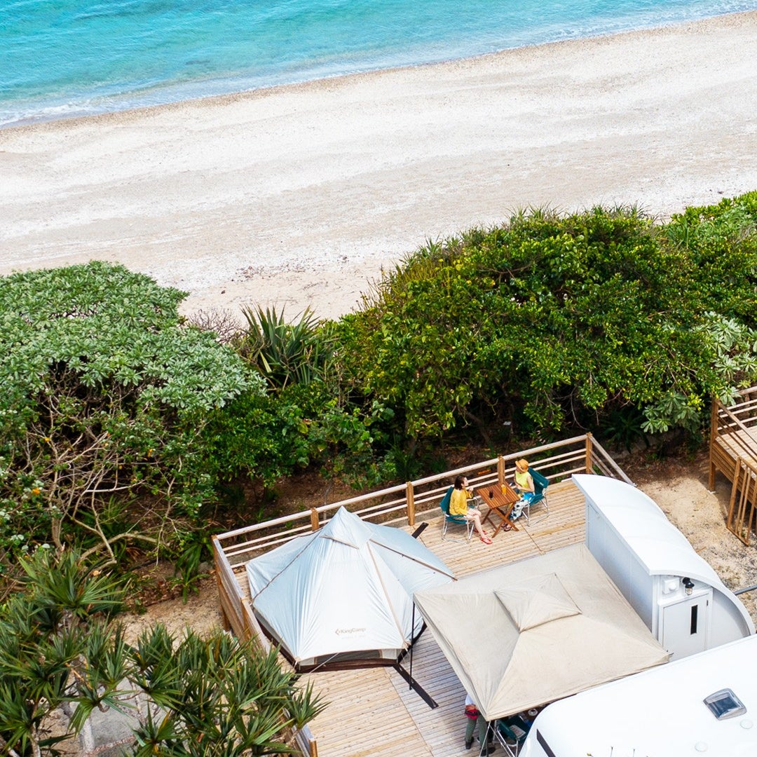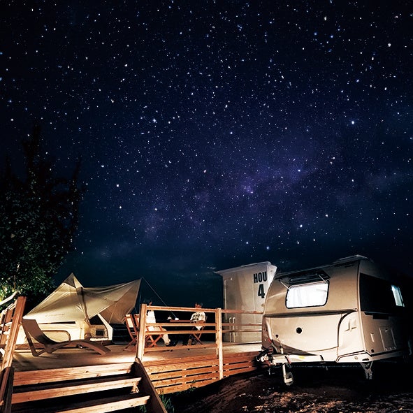本施設は、世界自然遺産・奄美大島の大和村に位置し、地下1,600mから湧き出る島内唯一の本格天然温泉です。日帰り利用はもちろん、プライベートウッドデッキ付きの本格トレーラーハウスで楽しむグランピング宿泊もご用意しております。