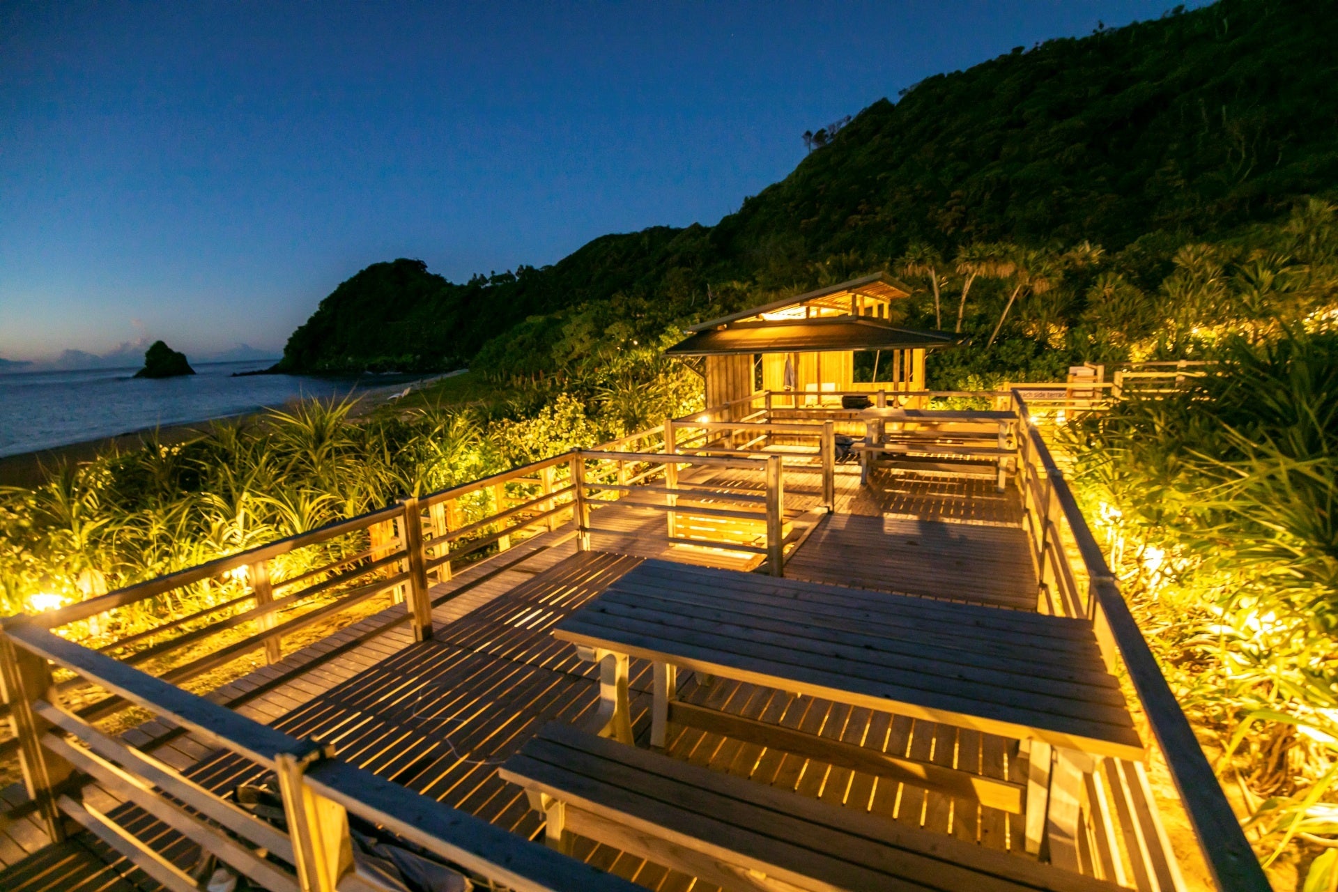 空と海が果てしなくつながるインフィニティバスの絶景天然温泉で心身を癒し、渓谷を想わせる屋外温水プールと、展望テラス付薪サウナからダイブできるウォータースライダーで遊び、原風景が残る浜辺のオープンエアレストランでさざなみのBGMとともに食事を愉しみ、満天の星空のもと眠りにつく。豊かな自然と共に非日常を感じる”上質な島時間”を堪能できるリゾートです。